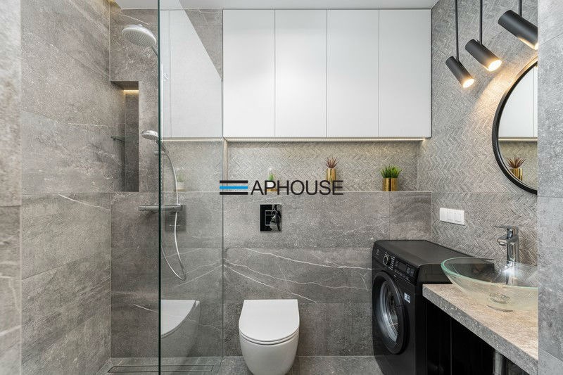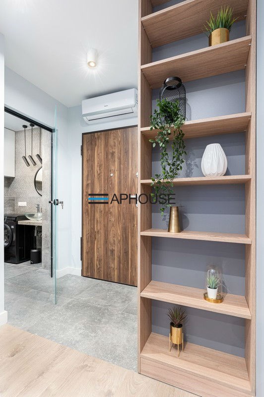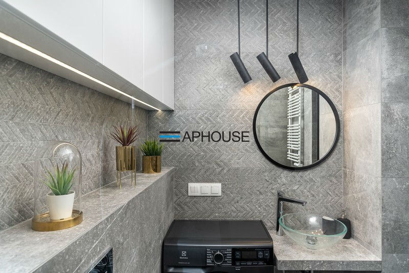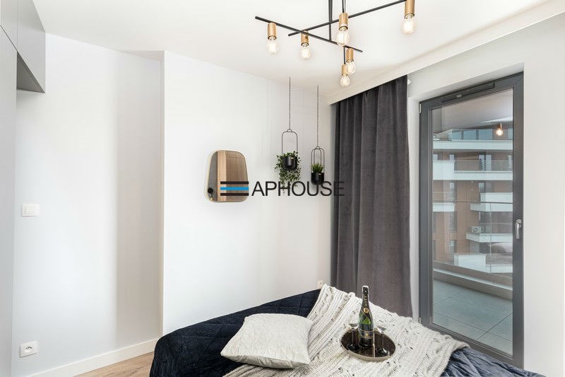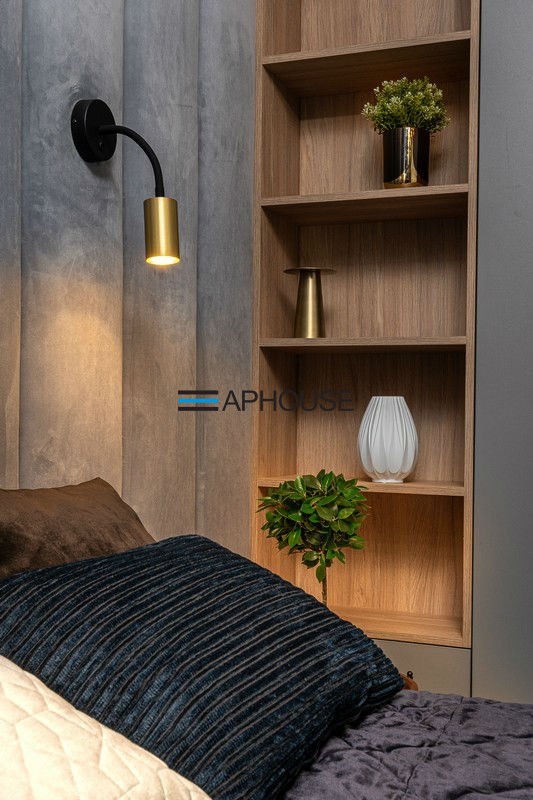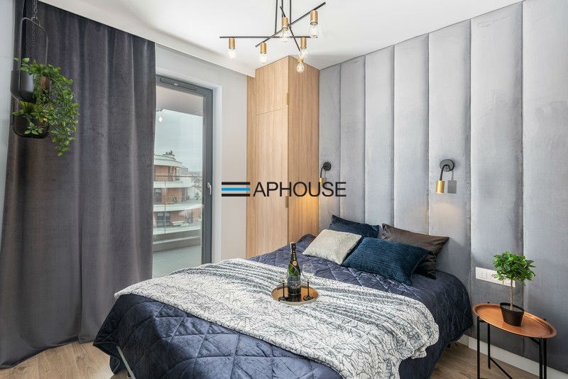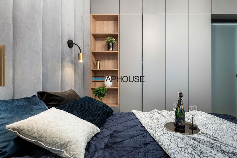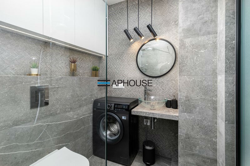 The bedroom has a modern double bed and wardrobes. The bathroom is designed with a shower cabin. The apartment has a large balcony. An additional advantage is the air conditioning.