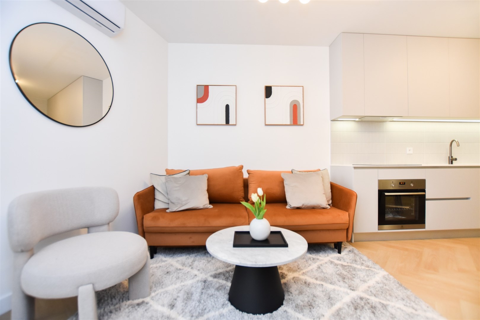 For rent: a modern, brand-new, fully furnished one bedroom apartment with air conditioning.