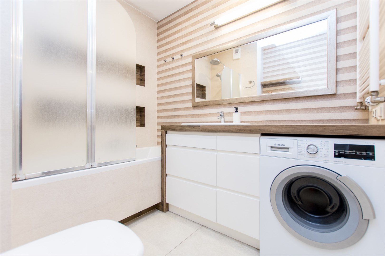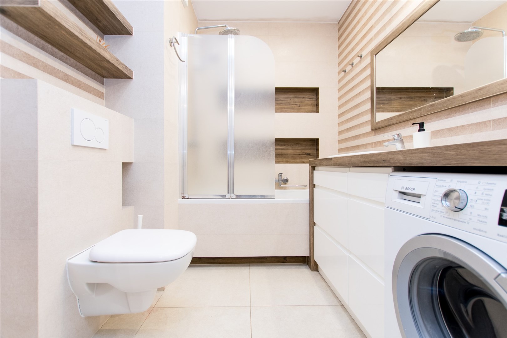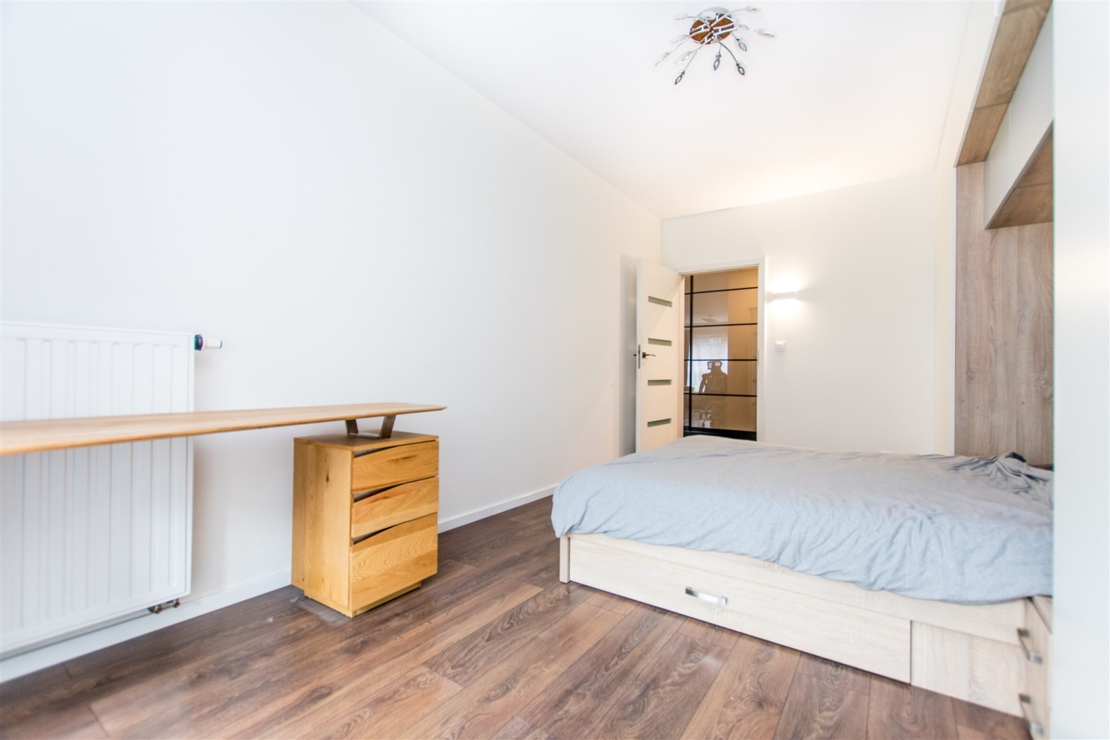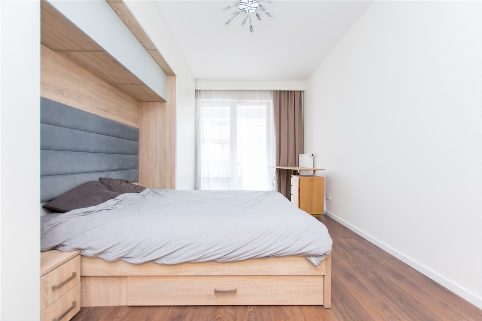 The interior of this property has been thoughtfully designed with attention to detail. The kitchenette is equipped with high-quality appliances: a large refrigerator with a freezer, a hob, an oven, a microwave, a dishwasher, and a range hood. The bedroom features a double bed with a 160x200cm mattress. A generous storage space enhances comfort.