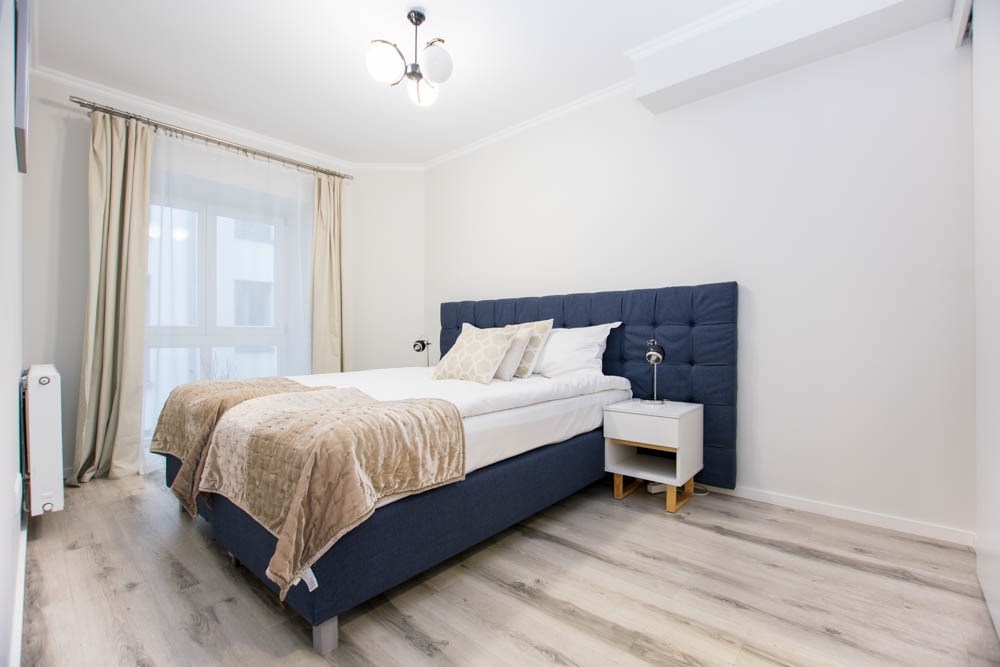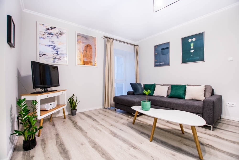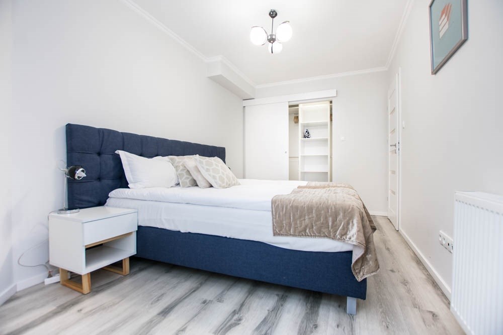 This cosy premise is located in a modern backside building with an elevator, which ensures peace and comfort of living. A fully equipped kitchen annex (hob, oven, fridge with freezer, dishwasher, kitchenware). Bathroom with a shower and washing machine. Folding sofa in the living room, TV and dining table for 4 people. A lot of storage space - walk-in closet in the bedroom and large wardrobe in the living room. Spacious bedroom allows to create a home office space.