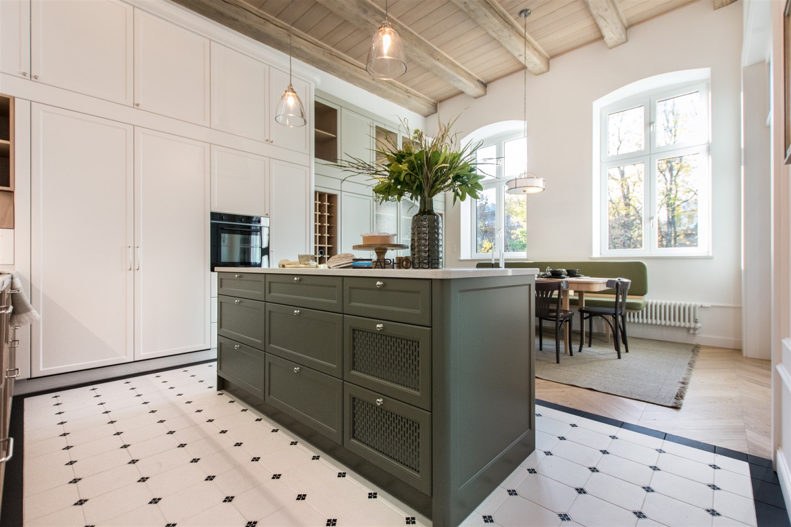 - kitchen with dining room;