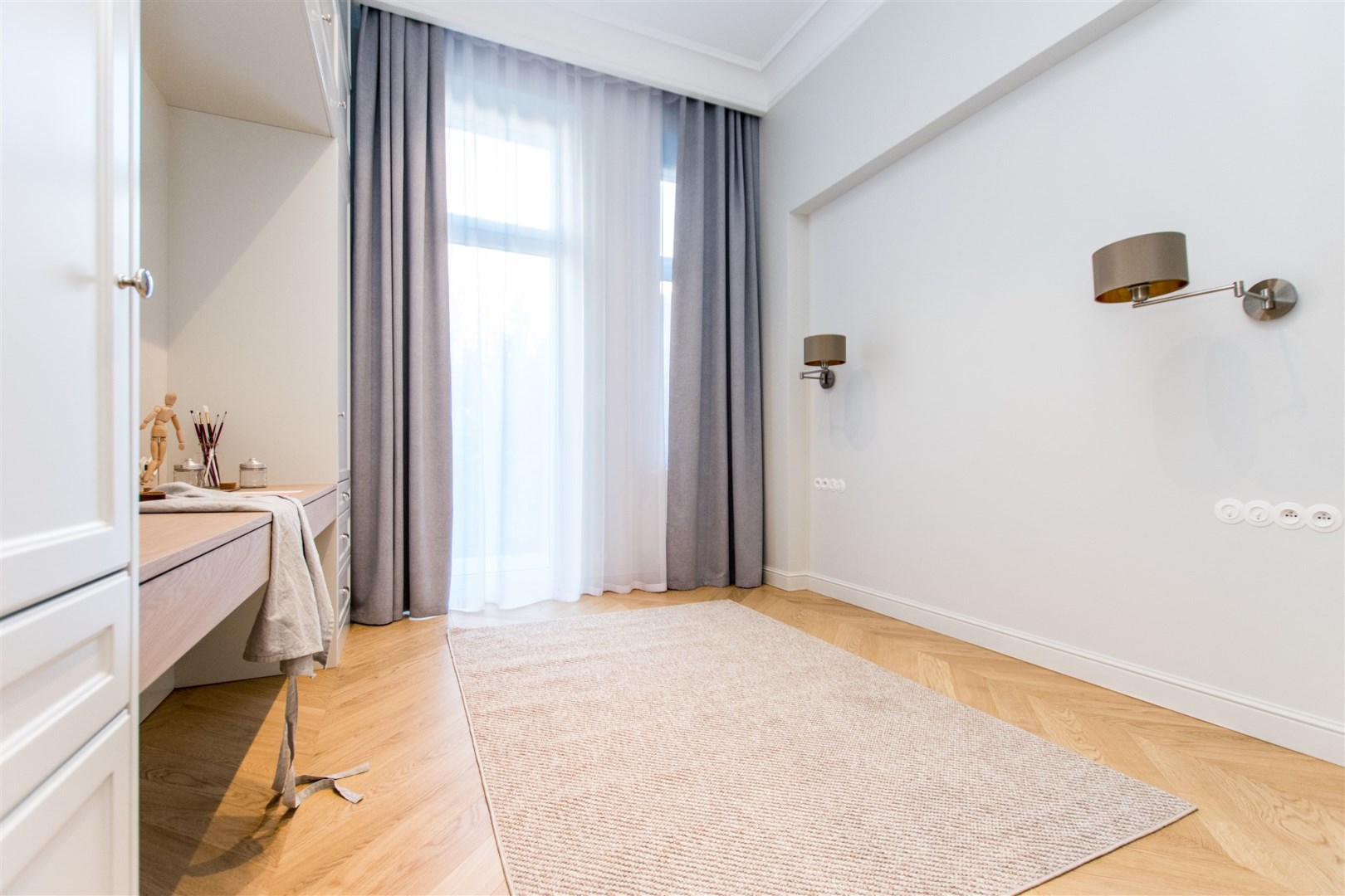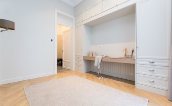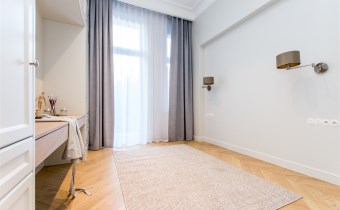 This quiet and bright apartment is finished in a unique style reflecting the atmosphere of the Old Town of Kraków. High ceilings (3.80-4m), wooden parquet floors and stylish custom-made furniture add elegance to the living space. Fully equipped kitchenette with an island (induction hob, oven, two-door fridge-freezer with water filter and ice maker, dishwasher, hood) offers many functional solutions. A significant advantage of the apartment that increases its functionality is a large amount of storage space and a separate laundry room with utility space. Two-sided property with eastern (from the yard) and western (with a green view of the Planty park) exposure. The real estate is equipped with air conditioning system and fast fiber-optic internet. Triple-glazed windows additionally quiet the interior. Heating and hot water from a high-quality second-function gas boiler.