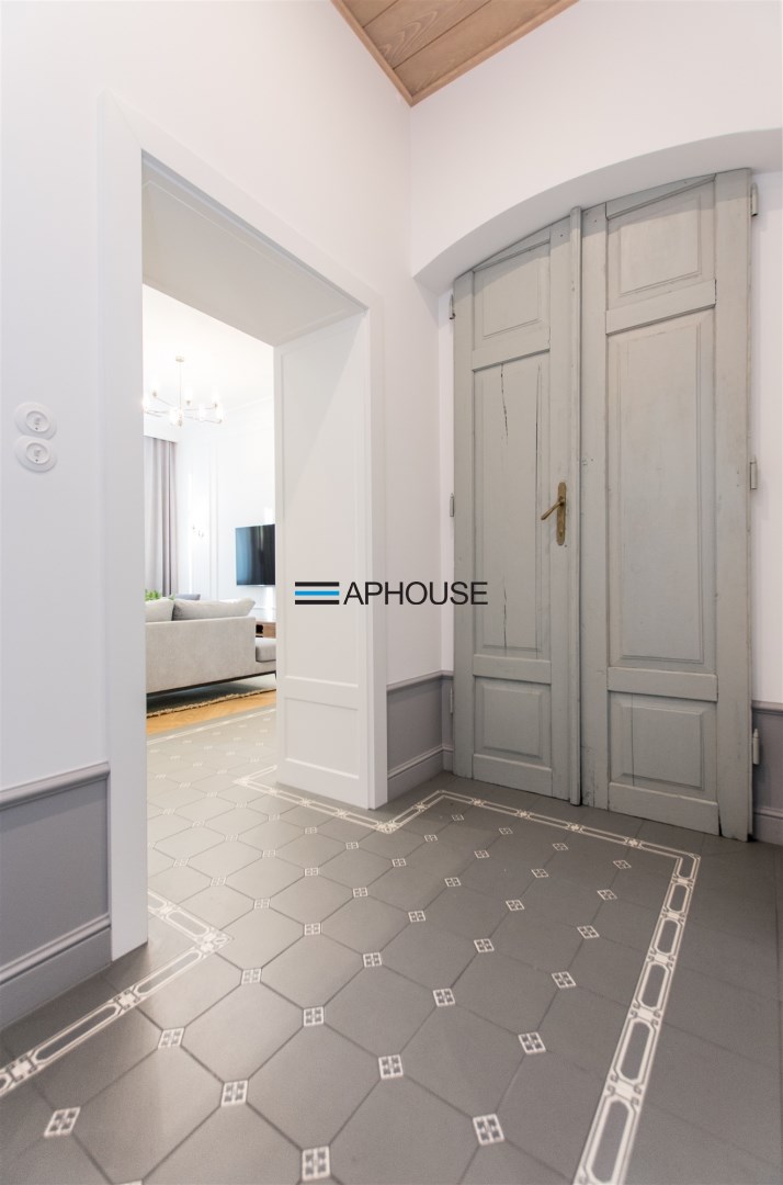 We are pleased to present an exclusive offer of this unique two-sided apartment occupying the entire 1st floor of an intimate building with an elevator after general renovation. Total area of 131 m2 consists of: