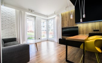 The apartment featured here was finished using top-quality materials, according to a custom design prepared by an interior designer. It is fully furnished and equipped, with air conditioning.
