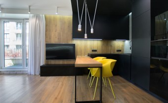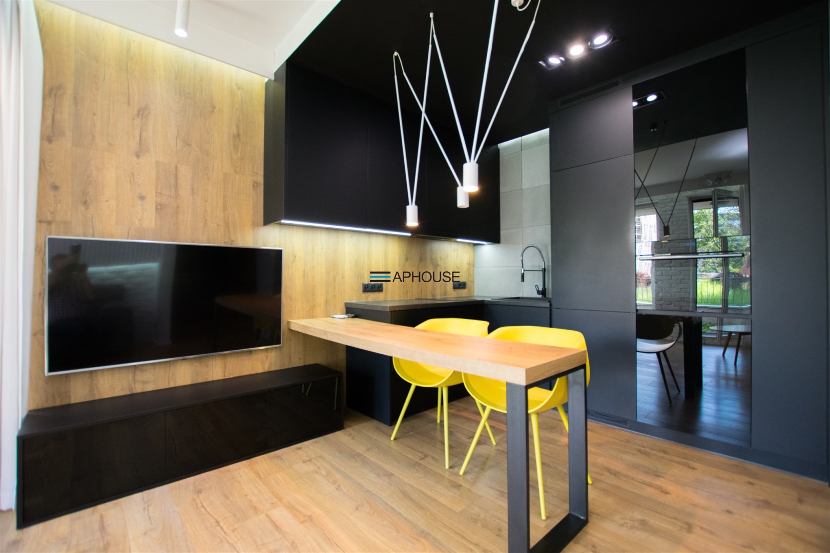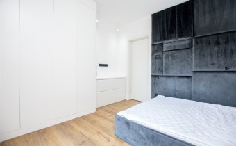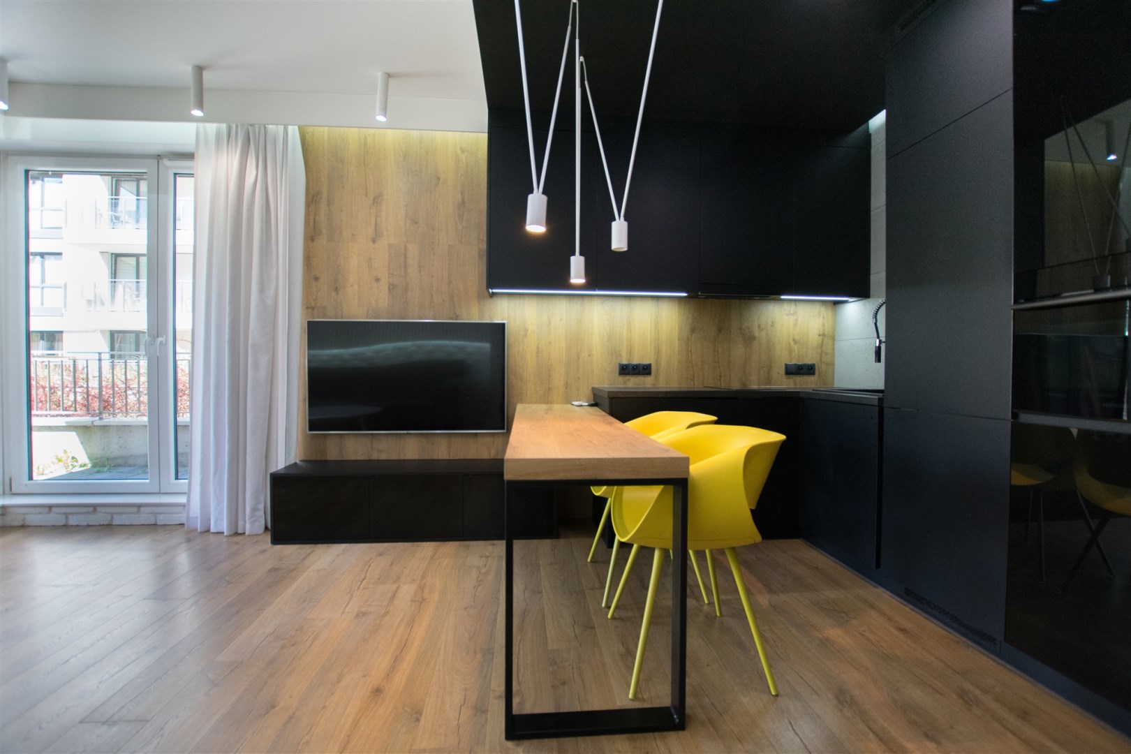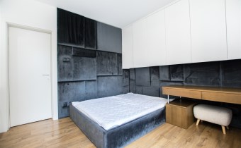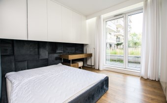 Fully equipped kitchen annex (fridge with a freezer, hob, dishwasher, oven). Bedroom with a comfortable double bed and large closet, desk. apartment has a corner terrace with an access from the living room and the bedroom. Additional wardrobe in the hallway.