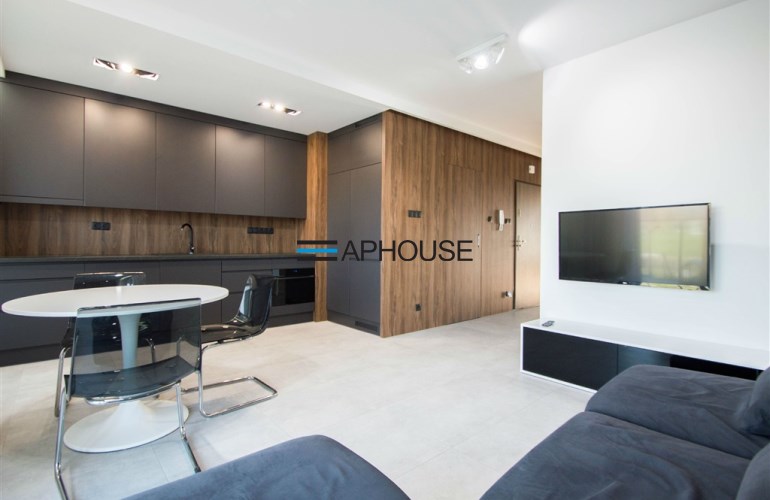 Prezentowane mieszkanie z bezpośrednim widokiem na Wisłę, wykończone zostało z wykorzystaniem materiałów najwyższej klasy zgodnie z indywidualnym projektem przygotowanym przez architekta wnętrz. Mieszkanie jest w pełni umeblowane i wyposażone. W salonie znajduje się komplet wypoczynkowy, meble RTV, TV oraz stół z krzesłami. Kuchnia została wyposażona w lodówko zamrażarkę, zmywarkę, okap, piekarnik. Łazienka wyposażona jest w prysznic, toaletę, umywalkę z szafką oraz pralkę. W sypialni znajduje się łóżko dwuosobowe oraz garderoba. W przedpokoju znajduje się dodatkowy schowek.