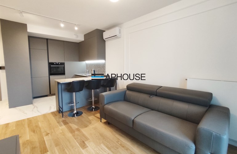 Mieszkanie wyposażone i umeblowane w wysokim standardzie wg. projektu architekta. W salonie znajduje się komplet wypoczynkowy z możliwością rozłożenia, stół z krzesłami, meblościanka oraz telewizor. Z salonu jest wyjście na balkon.