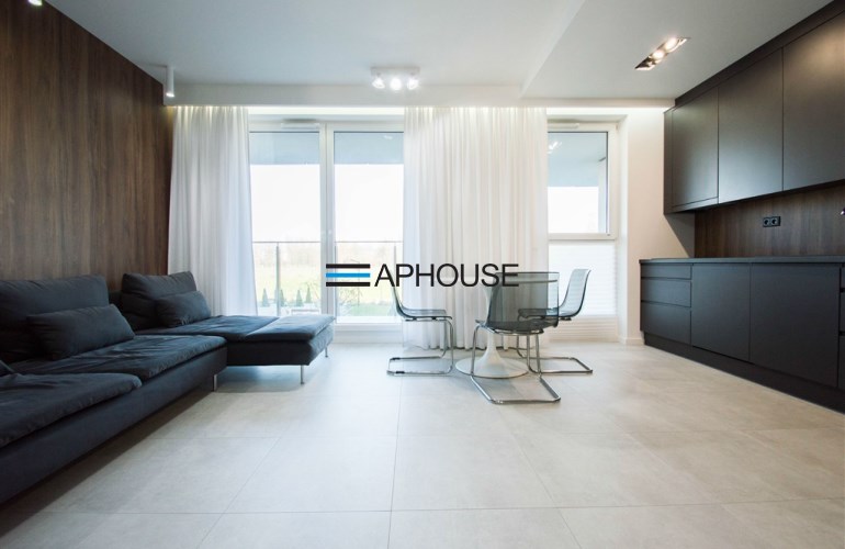 Prezentowane mieszkanie z bezpośrednim widokiem na Wisłę, wykończone zostało z wykorzystaniem materiałów najwyższej klasy zgodnie z indywidualnym projektem przygotowanym przez architekta wnętrz. Mieszkanie jest w pełni umeblowane i wyposażone. W salonie znajduje się komplet wypoczynkowy, meble RTV, TV oraz stół z krzesłami. Kuchnia została wyposażona w lodówko zamrażarkę, zmywarkę, okap, piekarnik. Łazienka wyposażona jest w prysznic, toaletę, umywalkę z szafką oraz pralkę. W sypialni znajduje się łóżko dwuosobowe oraz garderoba. W przedpokoju znajduje się dodatkowy schowek.