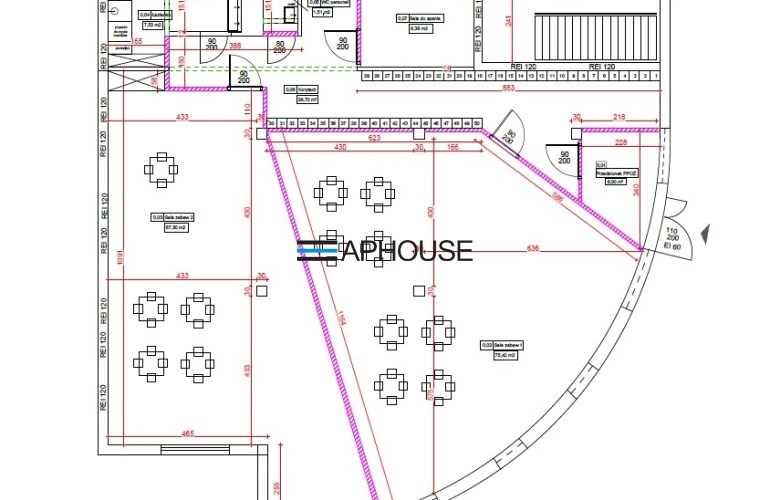 - Dwie przestronne sale główne (ok. 75,42 m² oraz 67,30 m²) – doskonałe jako open space, sale zajęciowe lub biura