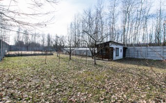 - w części tylnej działki zagospodarowany ogród ze szklarnią oraz drewniany domek letniskowo-gospodarczy o pow. 13,62 m2 z drewnianym tarasem;