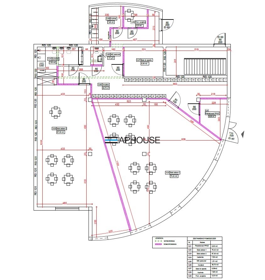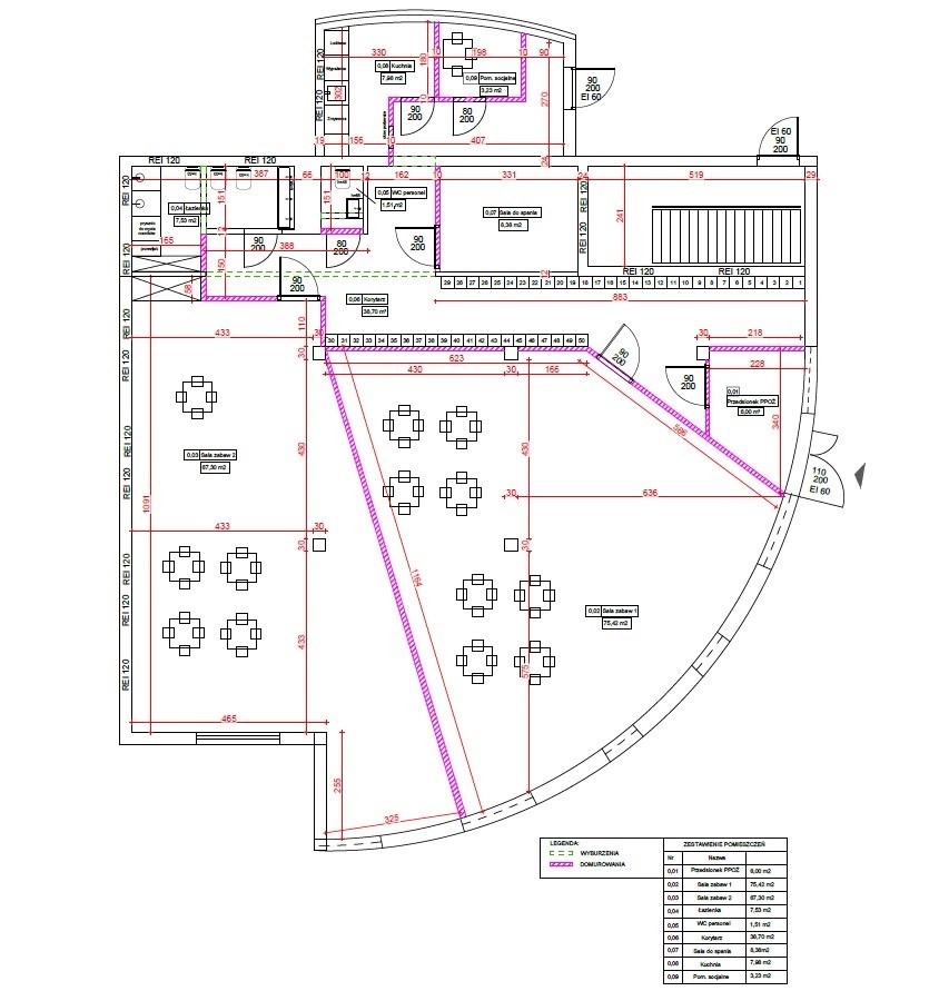 - Dwie przestronne sale główne (ok. 75,42 m² oraz 67,30 m²) – doskonałe jako open space, sale zajęciowe lub biura