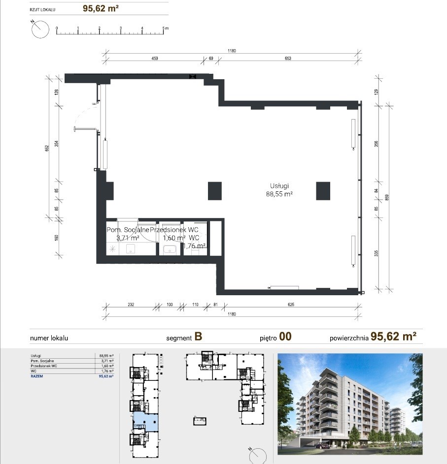 Lokal o powierzchni 95,62m2 położony jest na parterze i składa się z:
