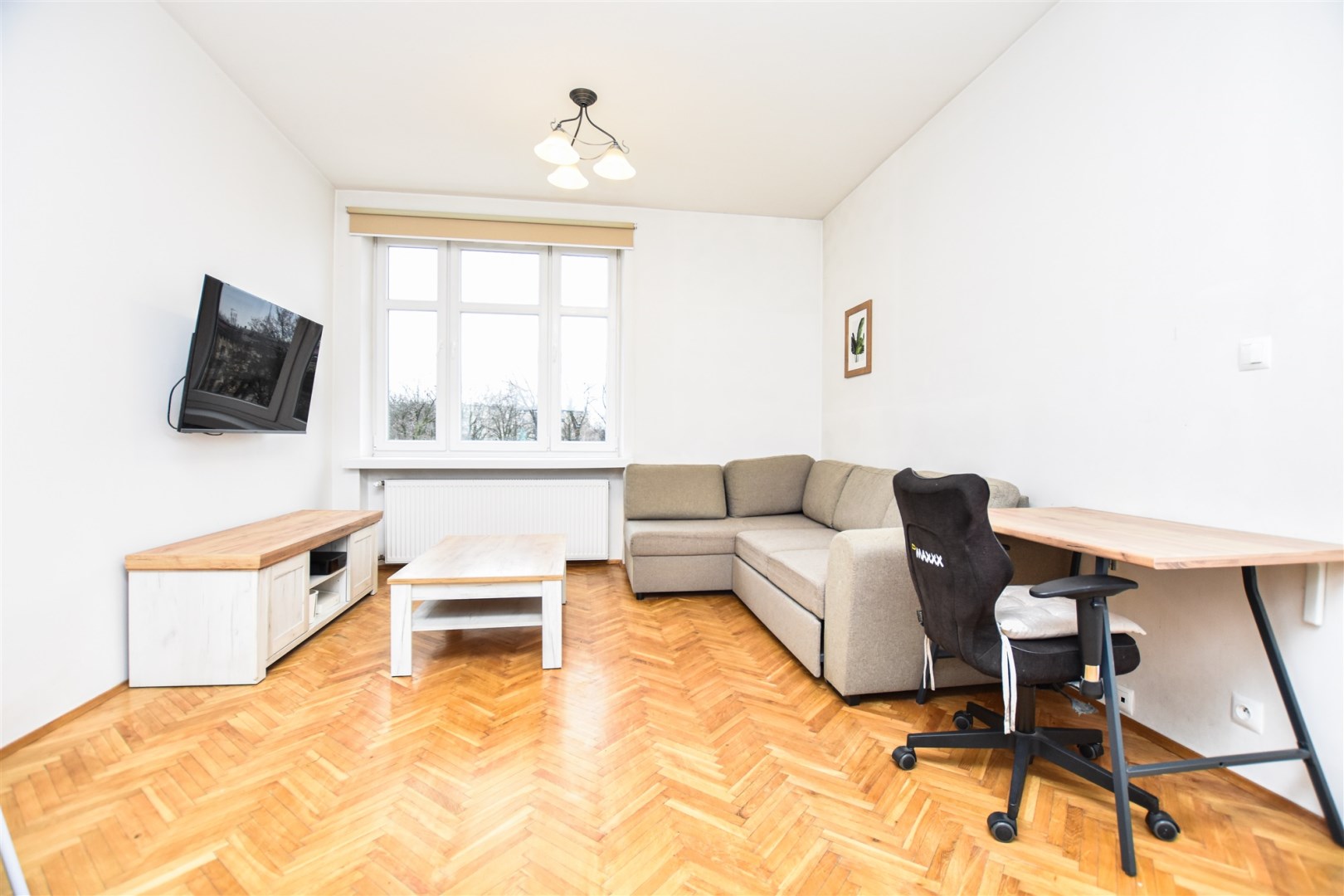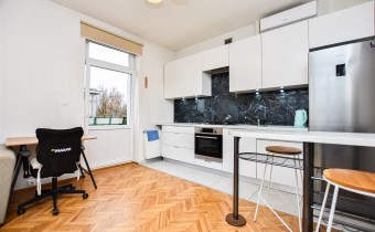 Przestronny salon z aneksem kuchennym z którego jest wyjście na mały balkon. Kuchnia w pełni umeblowana i wyposażona: meble kuchenne, piekarnik, płyta gazowa, zmywarka lodówka. Łazienka z prysznicem. W sypialni duża szafa w zabudowie. Mieszkanie bardzo jasne i przestronne. Niskie koszty utrzymania czynsz administracyjny ok 490 zł
