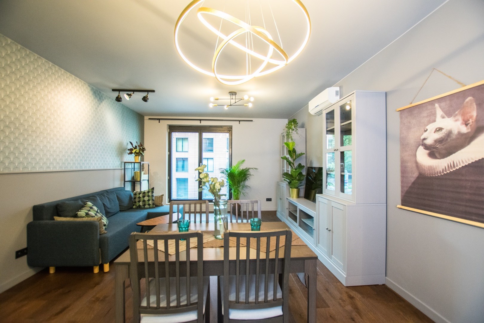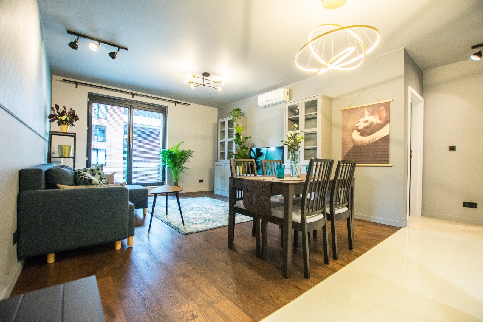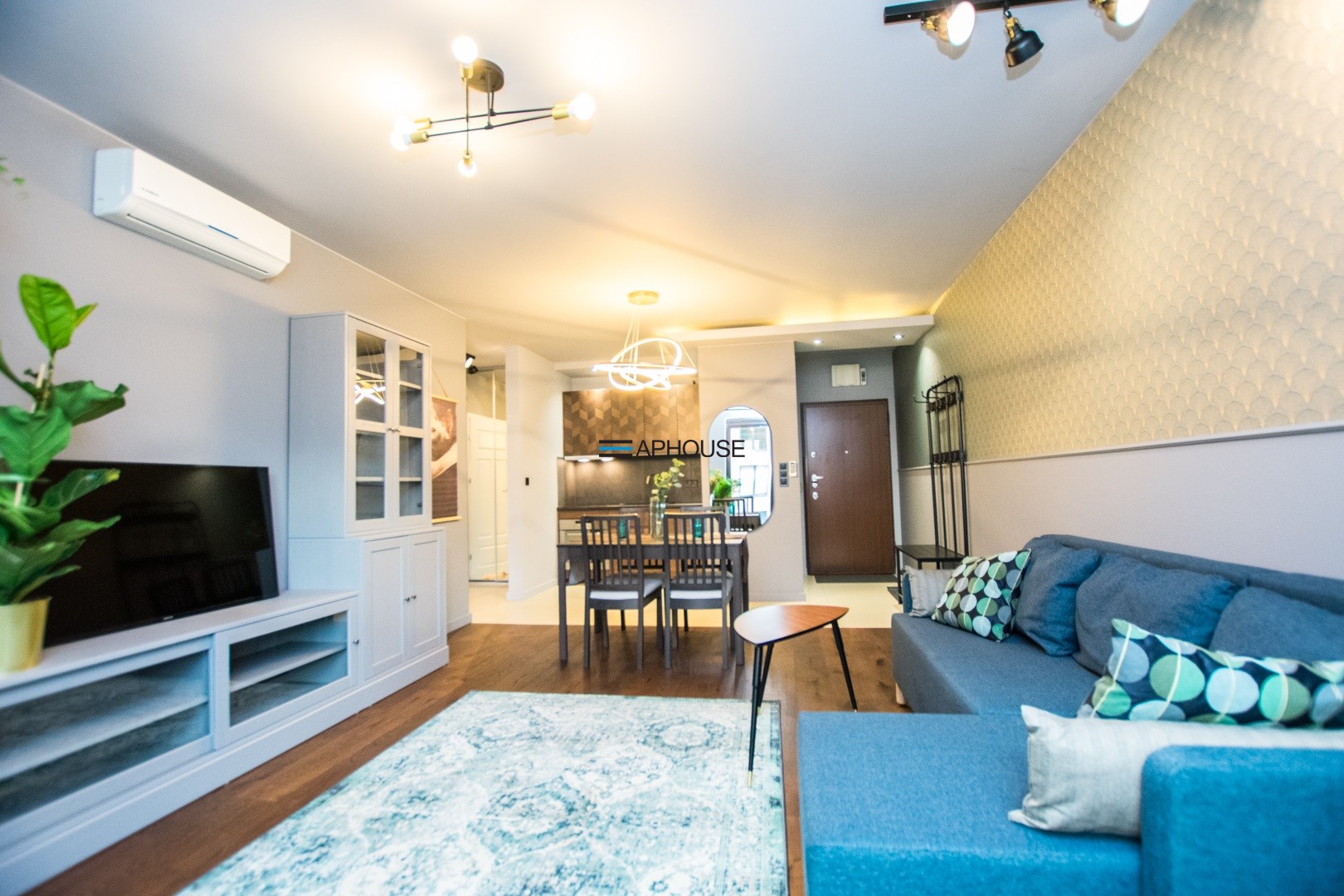 Klimatyzowany apartament w pełni wykończony i umeblowany w wysokim standardzie. W kuchni lodówko zamrażarka, zmywarka, piekarnik, płyta indukcyjna. W salonie sofa, stolik kawowy,, meblościanka, stół z 4 krzesłami, telewizor. W sypialni podwójne łóżko, szafki, pojemna szafa. W łazience wanna, umywalka z baterią, szafki, lustro, toaleta. Ogrzewanie i woda z miejskiej sieci MPEC.
