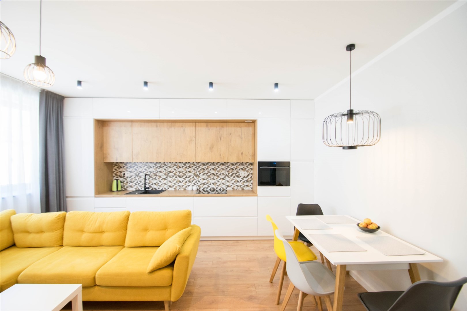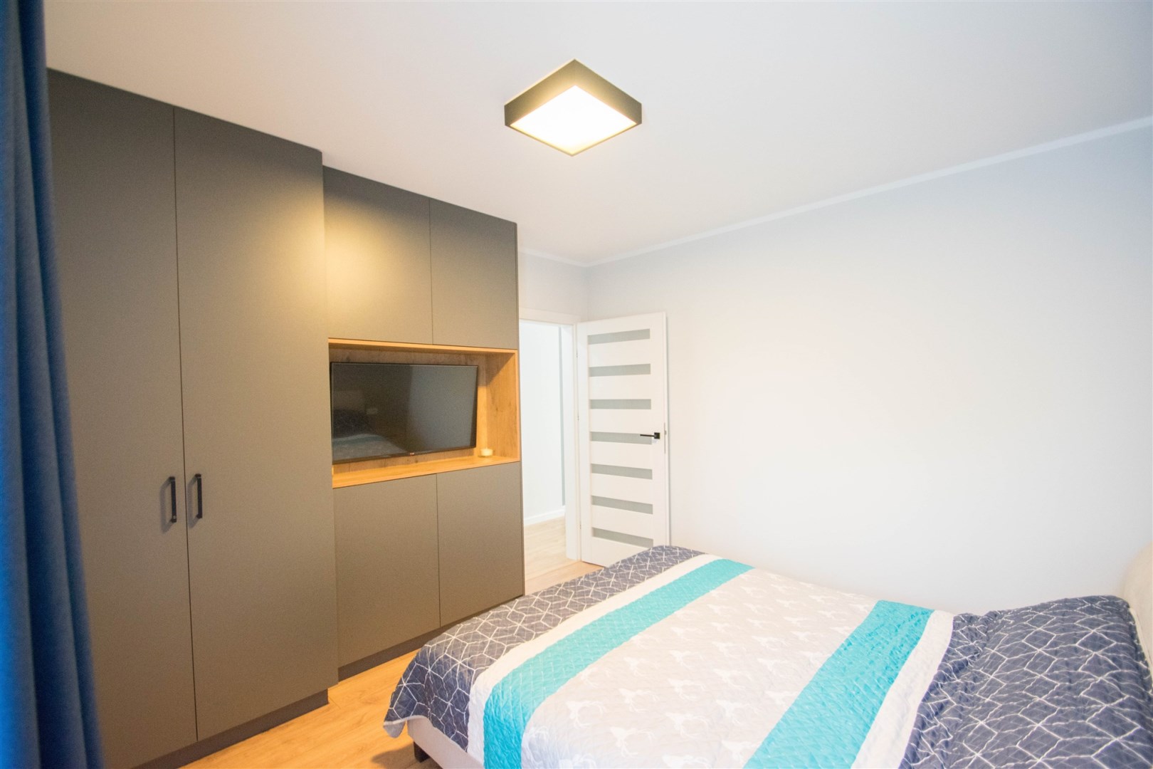 Mieszkanie zaprojektowana z dbałością o każdy szczegół wykończony w wysokim standardzie. Przestrony salon z dużą wygodną sofą, telewizorem, stolikiem kawowym. Aneks kuchenny z meblami na wymiar wyposażone w zmywaka piekarnik z funkcją mikrofalówki, płyta indukcyjna, lodówko-zamrażarka. W głównej sypialni znajduje się duże dwuosobowe łóżko, szafki noce, szafa na wymiar, telewizor. Druga sypialnia obecnie pełni funkcję gabinety w którym znajduje się duże biurko, szafa w zabudowie. Łazienka z wanną i opcją prysznicową, toaleta, umywalką z szafką oraz pralko-suszarka. W przedpokoju znajduje się pojemna szafa w zabudowie. Do mieszkania przynależy miejsce postojowe w garażu podziemnym płatne dodatkowo 80000zł.