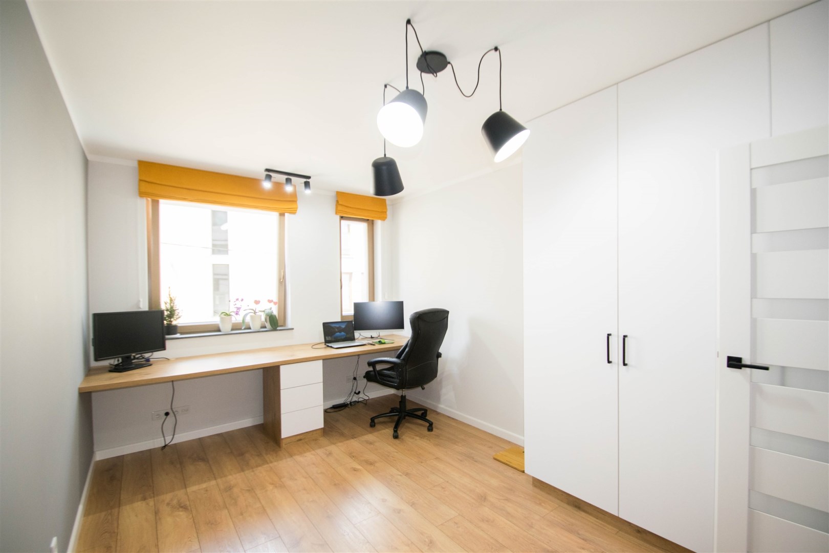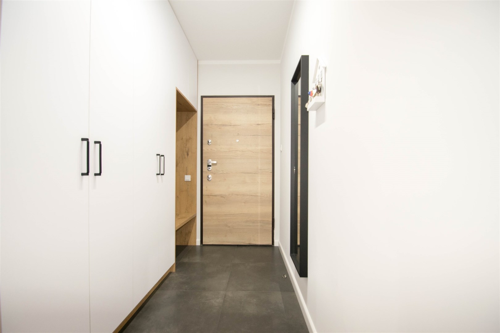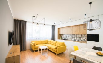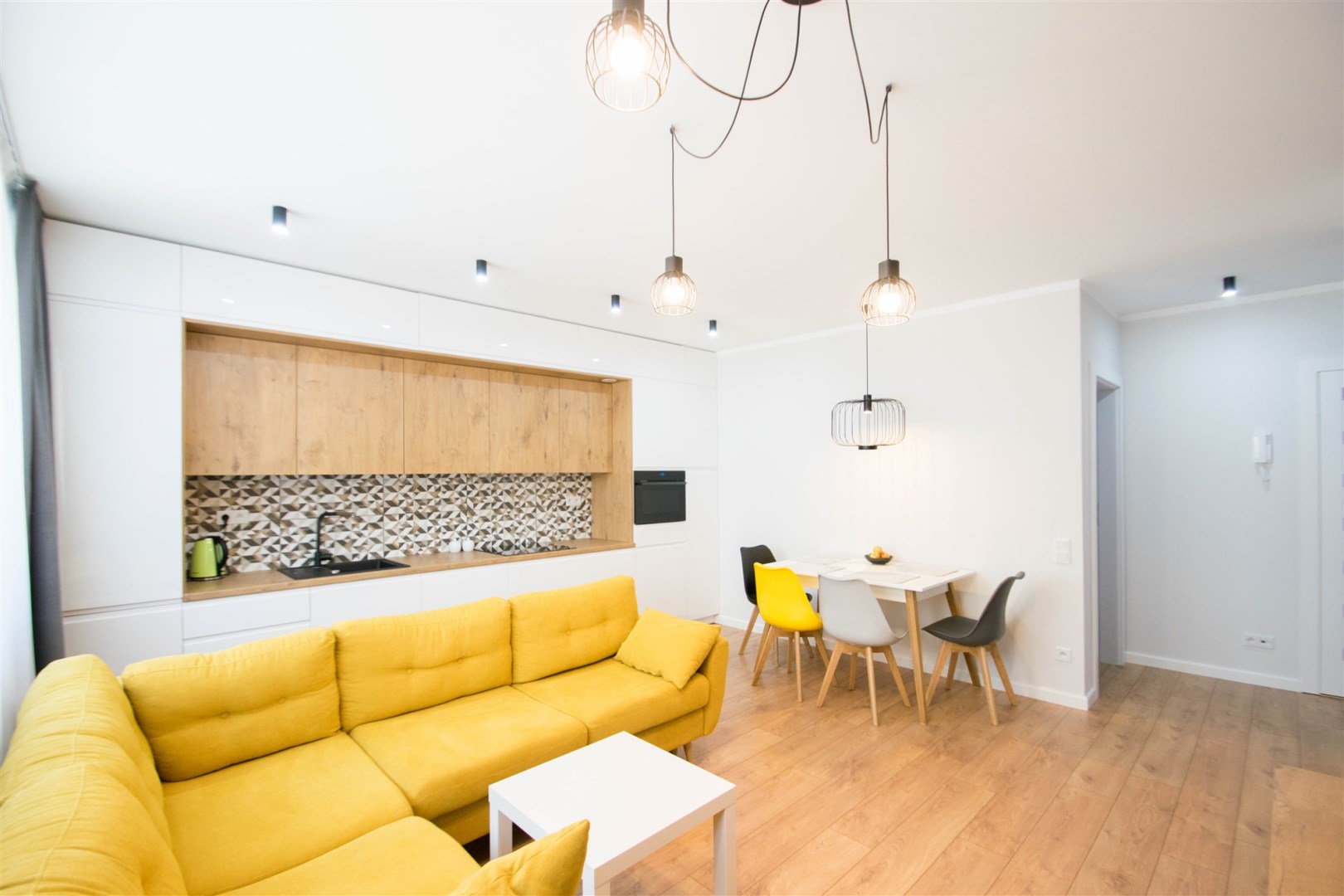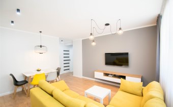 Mieszkanie zaprojektowana z dbałością o każdy szczegół wykończony w wysokim standardzie. Przestrony salon z dużą wygodną sofą, telewizorem, stolikiem kawowym. Aneks kuchenny z meblami na wymiar wyposażone w zmywaka piekarnik z funkcją mikrofalówki, płyta indukcyjna, lodówko-zamrażarka. W głównej sypialni znajduje się duże dwuosobowe łóżko, szafki noce, szafa na wymiar, telewizor. Druga sypialnia obecnie pełni funkcję gabinety w którym znajduje się duże biurko, szafa w zabudowie. Łazienka z wanną i opcją prysznicową, toaleta, umywalką z szafką oraz pralko-suszarka. W przedpokoju znajduje się pojemna szafa w zabudowie. Do mieszkania przynależy miejsce postojowe w garażu podziemnym płatne dodatkowo 80000zł.