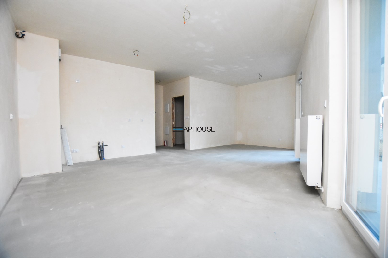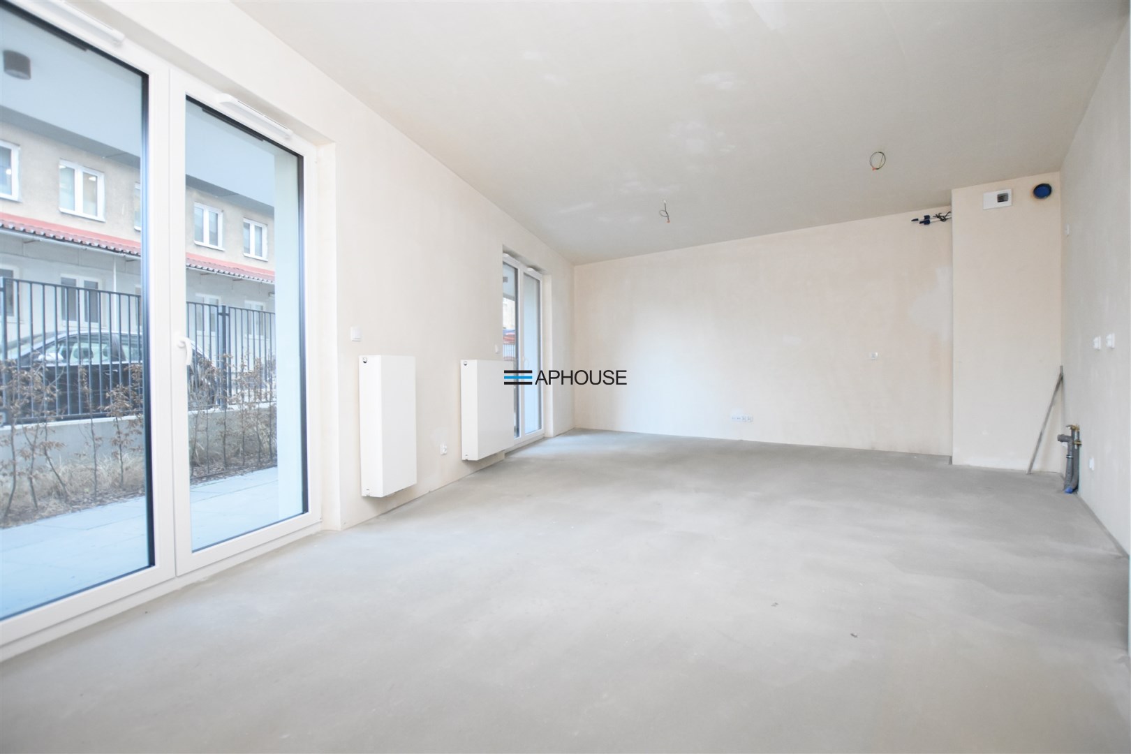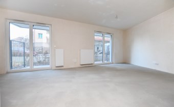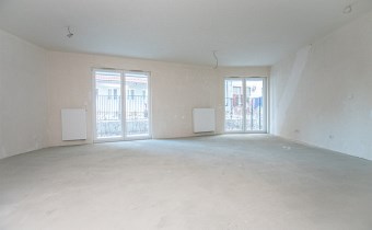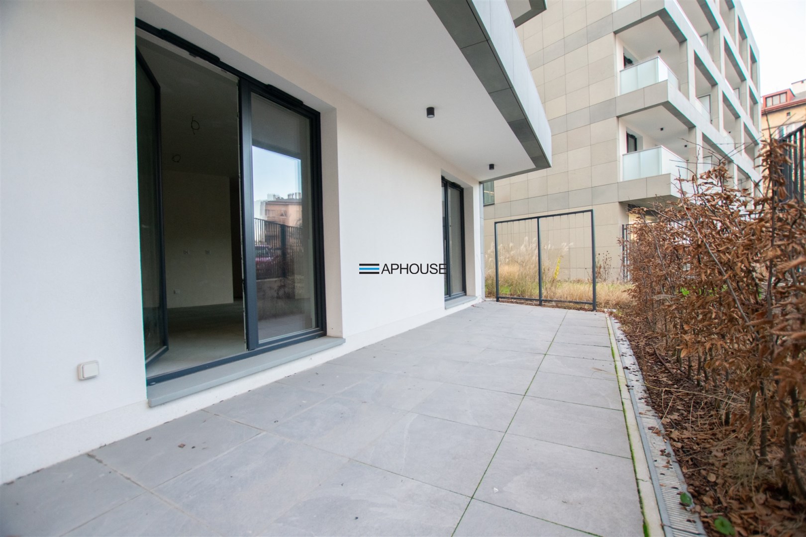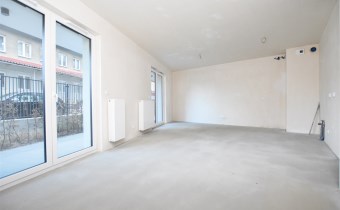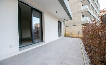 Mieszkanie znajduje się na parterze nowoczesnego budynku i charakteryzuje się dużymi przeszkleniami, które zapewniają doskonałe doświetlenie wnętrz oraz poczucie przestrzeni.