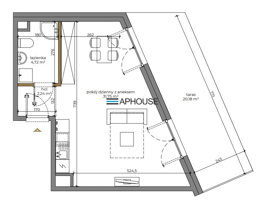 - salon z aneksem kuchennym,