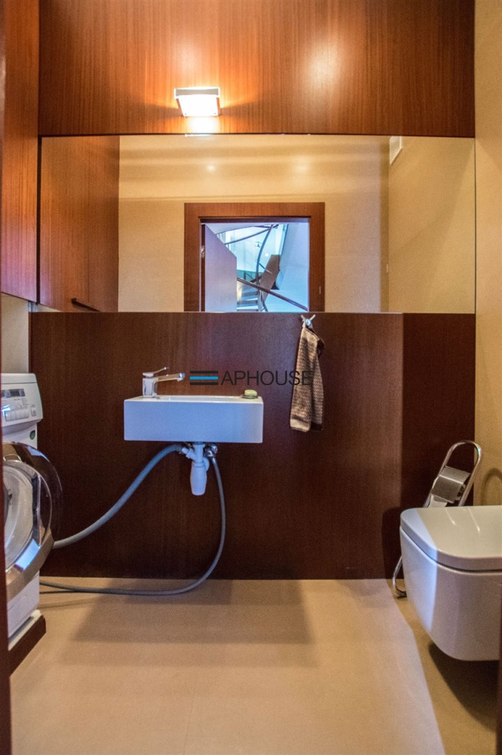Apartament wykończony z dbałością o każdy szczegół w bardzo wysokim stylu wykończony materiałami najwyższej jakości. Częściowo umeblowany wysokiej klasy meblami oraz sprzętami (Loewe, Samsung, Dierre,Siemens ). Wyposażona w pełni umeblowana kuchnia w takie sprzęty jak zmywarka lodówka z zamrażalnikiem, piekarnik, okap, płyta grzewcza. W apartamencie znajdują się także 2 łazienki w jednej zainstalowana sauna osobna toaleta.