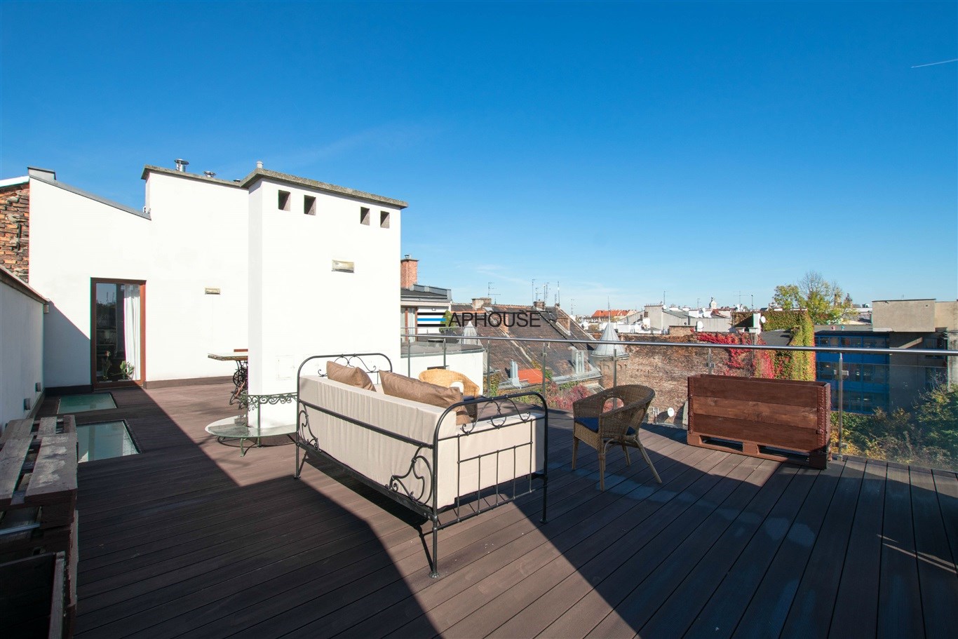 W mieszkaniu zainstalowana jest klimatyzacja, instalacja alarmowa i system inteligentnego domu. Ogromnym atutem jest taras z którego rozpościera się widok na ogrody sąsiednich kamienic i dachy kamienic Rynku Głównego. Apartament cichy i słoneczny.
