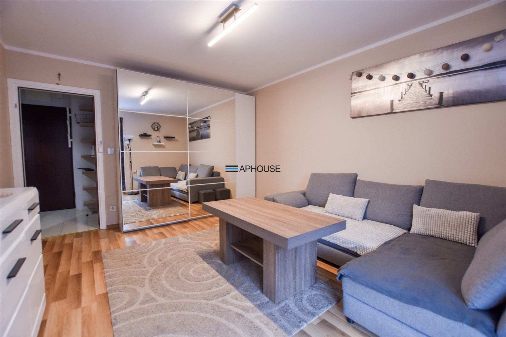 Mieszkanie jest w pełni umeblowane i wyposażone. W salonie znajdziemy sofę rozkładaną, stolik kawowy, telewizor oraz dużą pojemną szafę. W części kuchennej znajduje się lodówke, piekarnik. Sypialnia została wyposażona w sofe rozkładaną oraz szafę . Łazienka z wanną, pralką oraz toaletą.