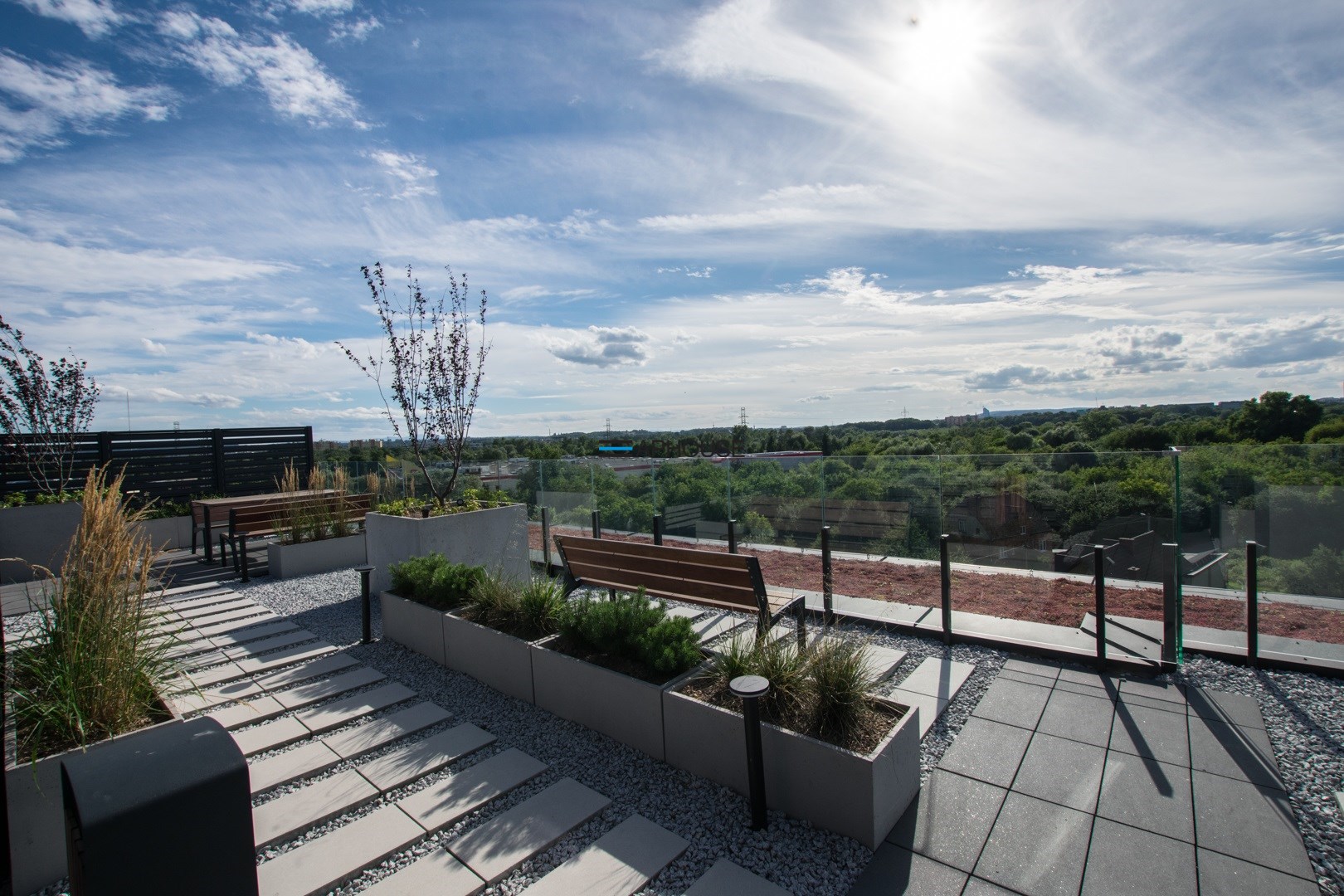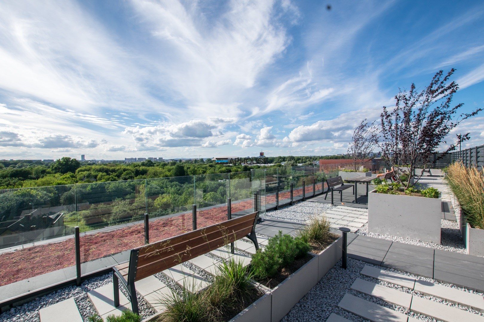 W budynku znajduje się taras na dachu z widokiem na panoramę miasta dostępny tylko dla mieszkańców.