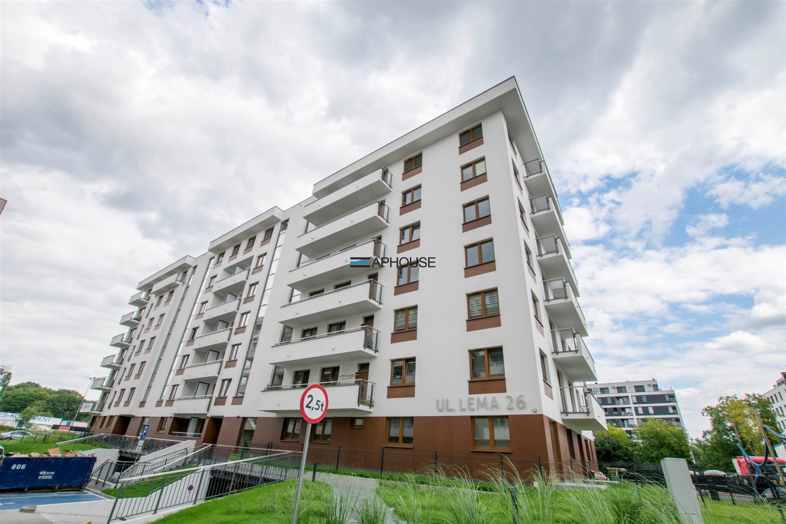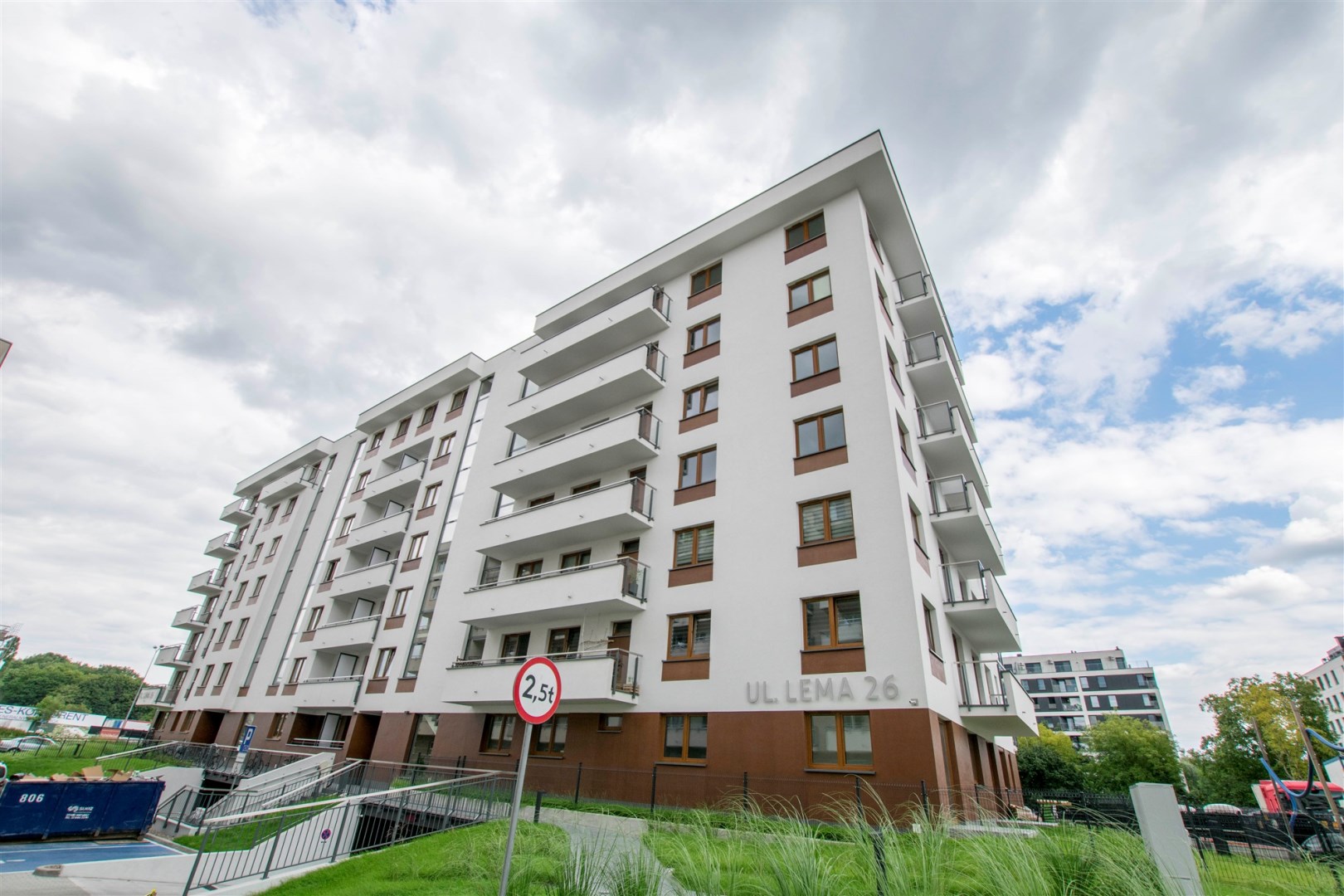 Mieszkanie znajduje się w nowym bloku przy ulicy Lema, wykończonym w wysokim standardzie, z cichobieżną windą, garażem podziemnym i monitoringiem.