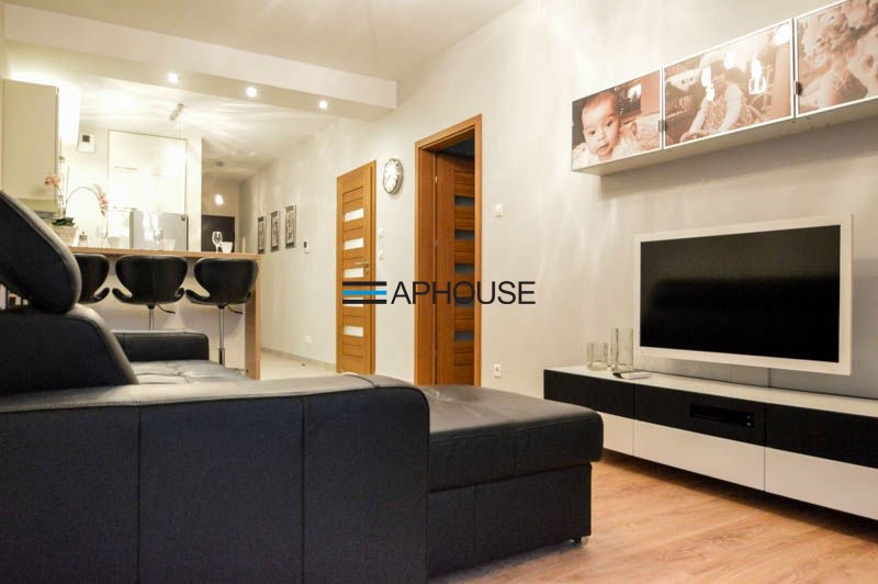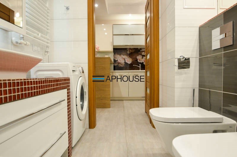 Wnętrze prezentowanej nieruchomości zostało zaprojektowane w sposób przemyślany, z dbałością o szczegóły. Komfort użytkowania podnosi aneks kuchenny wyposażony w sprzęty wysokiej klasy tj. duża lodówka z zamrażarką, płyta grzewcza, piekarnik, mikrofala, zmywarka, okap oraz czajnik. W sypialni łóżko dwuosobowe oraz miejsce do pracy. Dodatkowym atutem mieszkania jest pojemna garderoba.