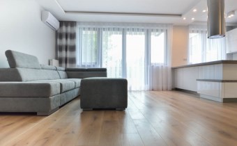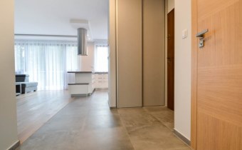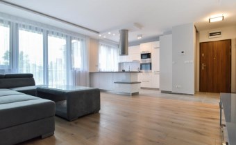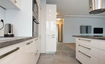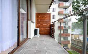 Mieszkanie dwustronne, świetnie doświetlone (salon od południa, sypialnie od północy). Komfort użytkowania podnosi aneks kuchenny wyposażony w sprzęty wysokiej klasy tj. duża lodówka z zamrażarką, płyta grzewcza, piekarnik, zmywarka oraz okap. W sypialni wygodne łóżko dwuosobowe oraz zabudowana szafa. Dodatkowym atutem nieruchomości jest klimatyzacja.