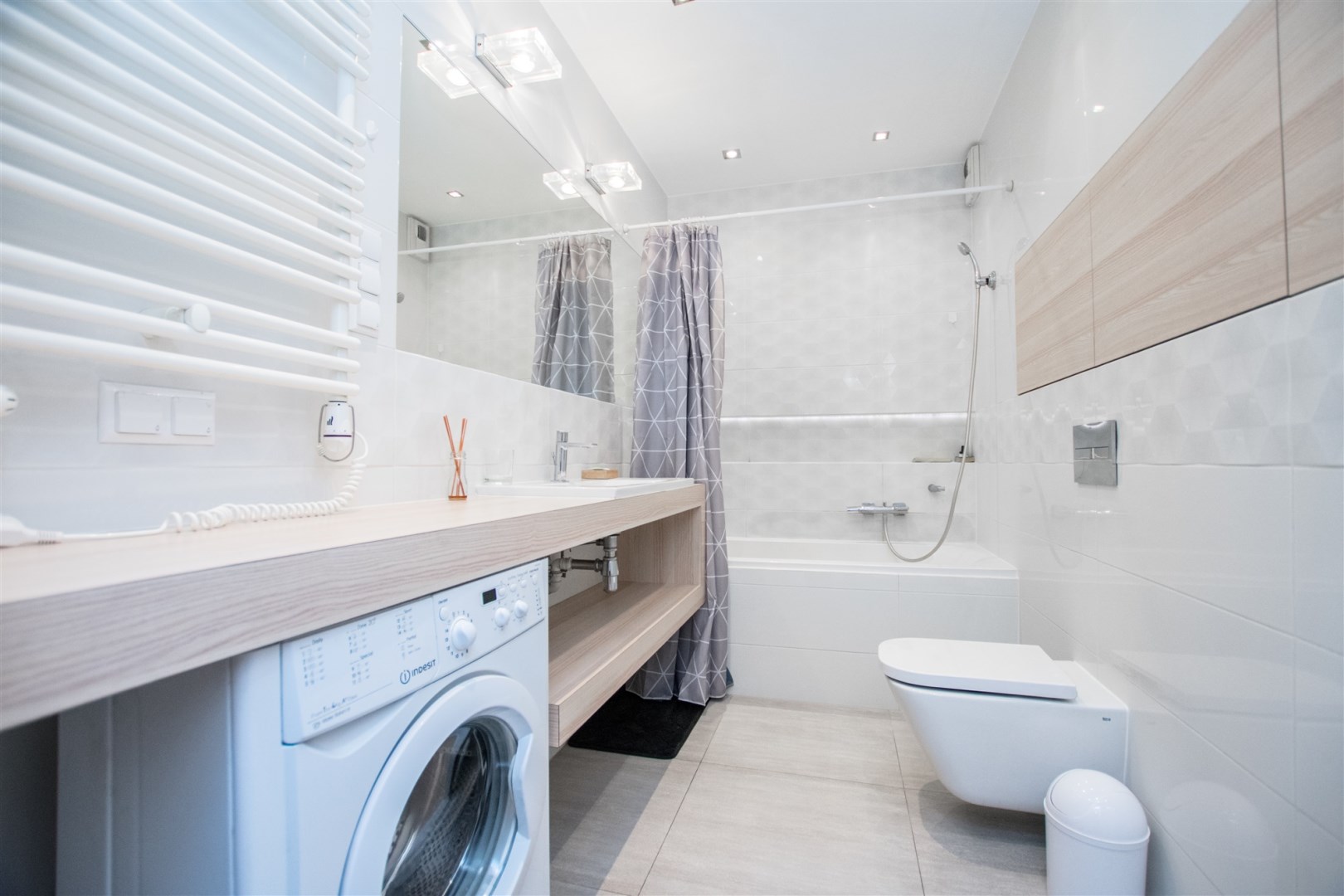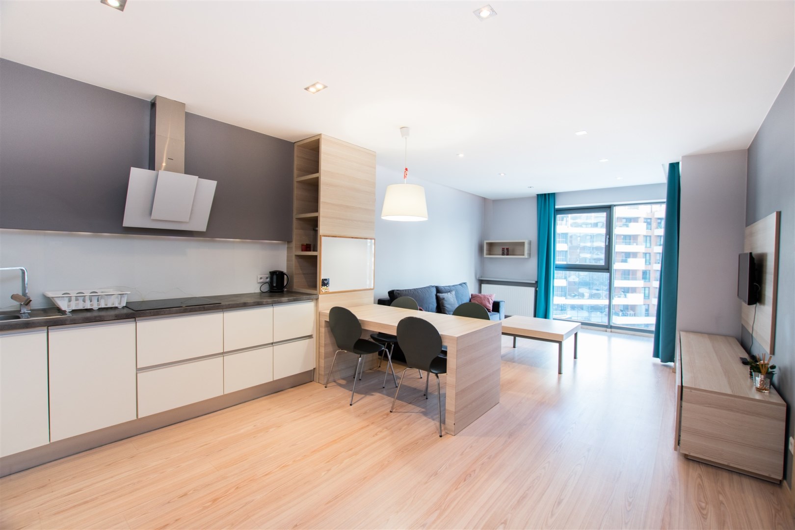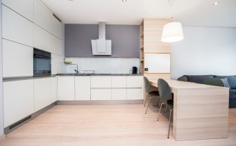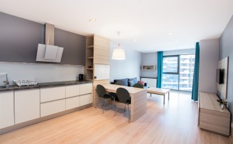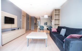 W pełni umeblowany i wyposażony apartament zaprojektowane z dbałością o każdy szczegół. Nowoczesny salon z sofą, stolikami kawowymi, szafkami, telewizorem. Aneks kuchenny w pełni wyposażony w sprzęt AGD tj. płyta indukcyjna, piekarnik, lodówka z zamrażalnikiem, zmywarkę, ekspres czajnik, stół z krzesłami. W sypialni podwójne łóżko, duża szafa w zabudowie, komody. Nowoczesna Łazienka z wanną oraz opcją prysznicową, pralką, umywalka i toaleta, szafki. Mieszkanie w pełni umeblowane wyposażone i gotowe do zamieszkania. Mieszkanie posiada duży balkon z stolikiem kawowym oraz krzesłami.