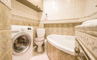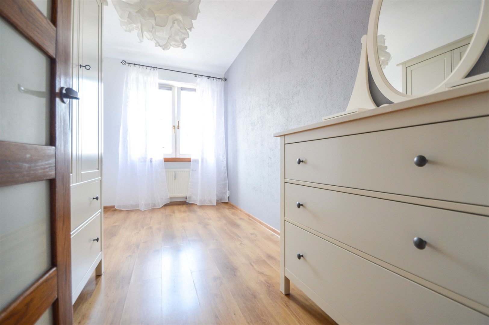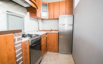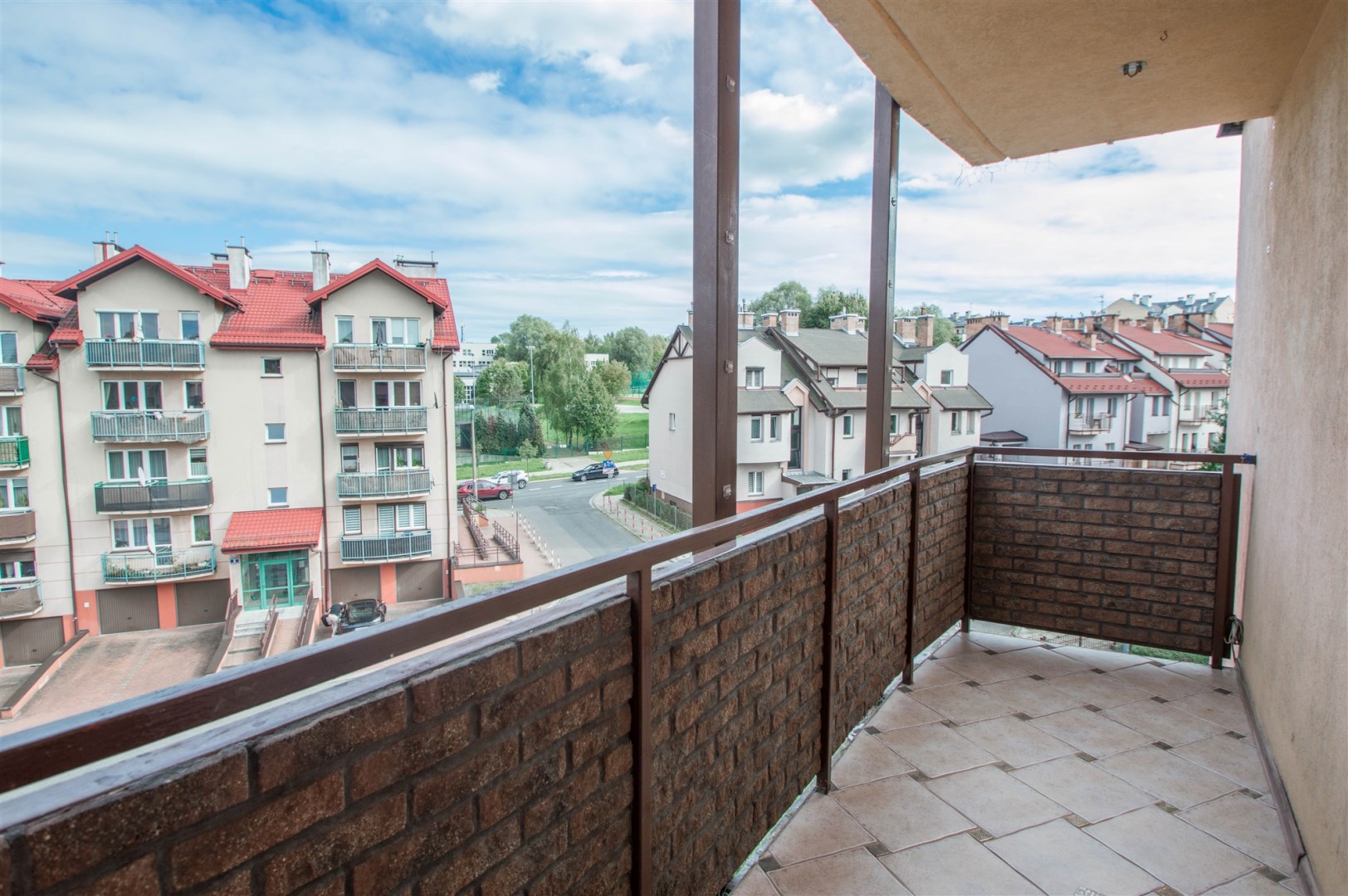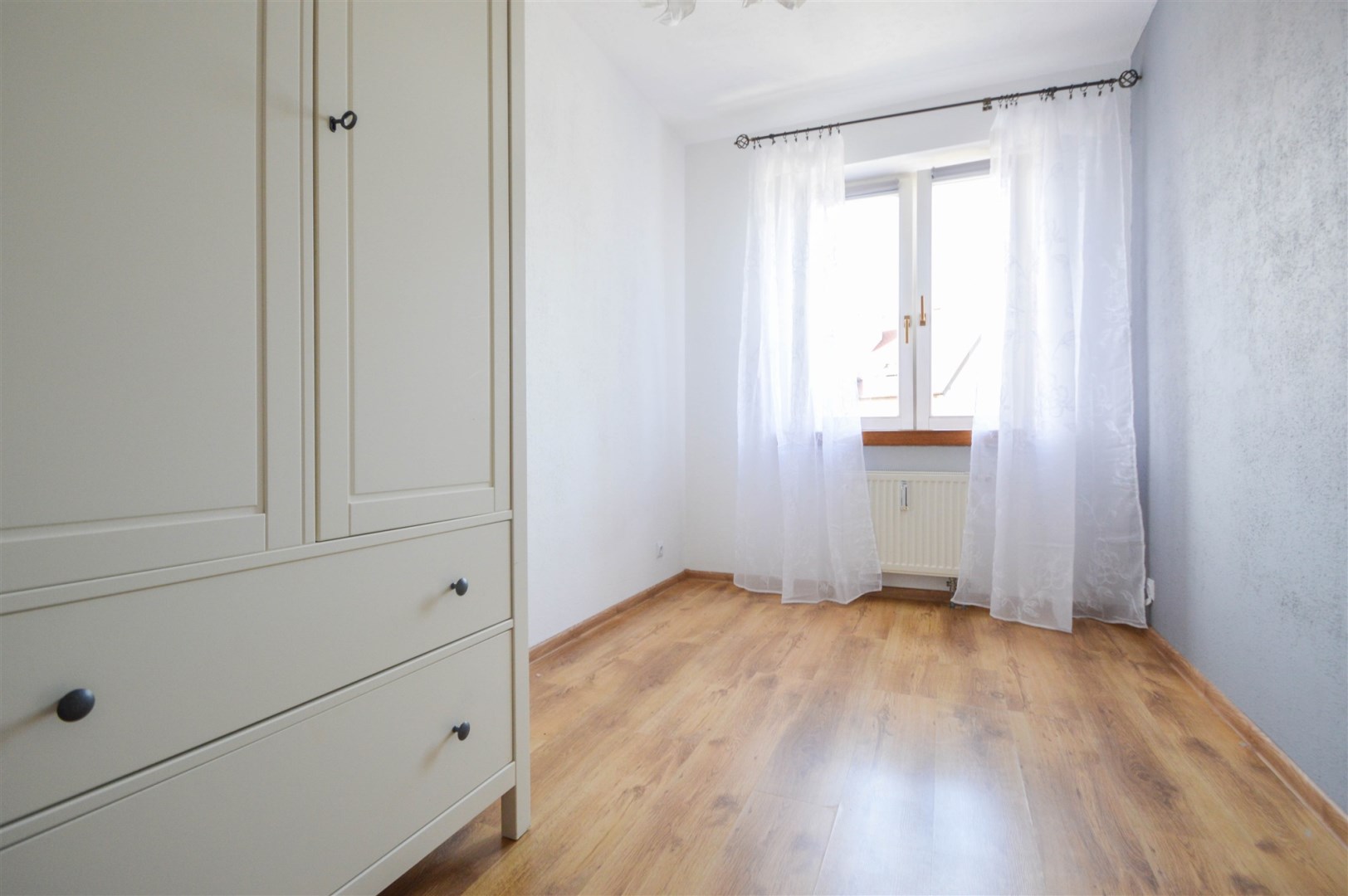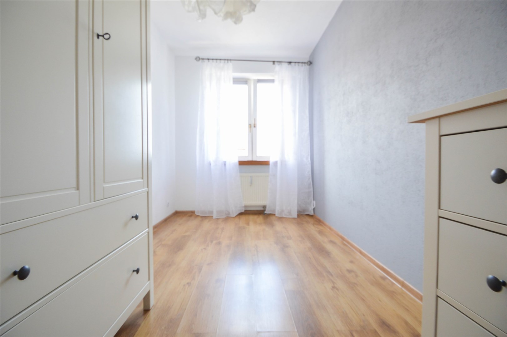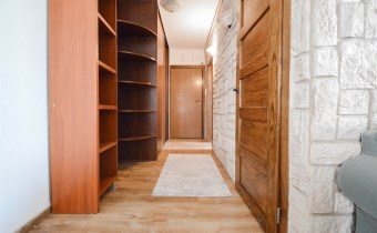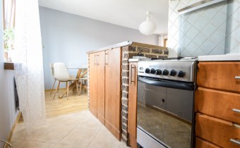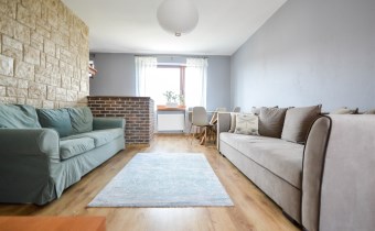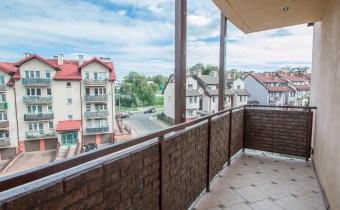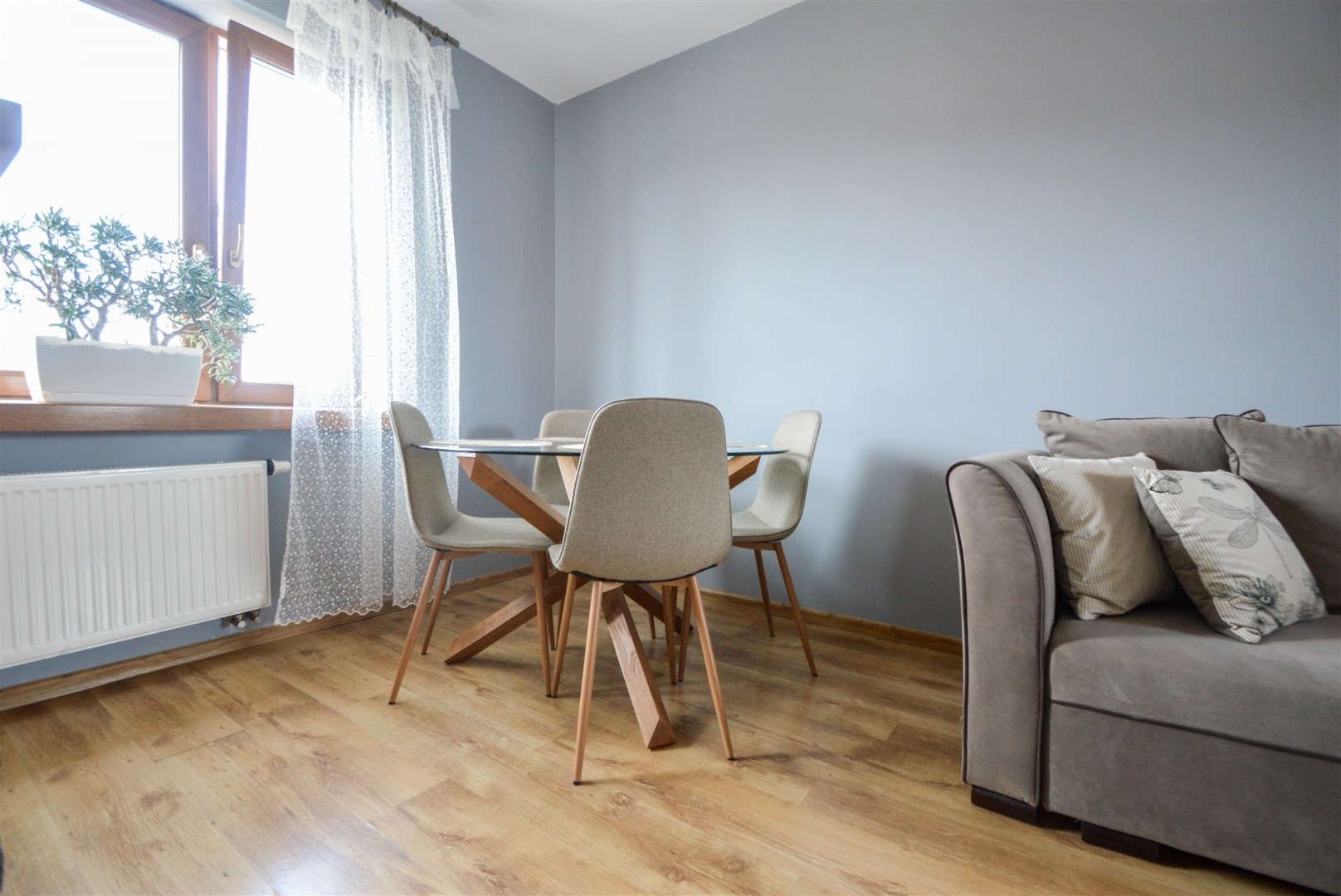 Salon wyposażony został w wygodne dwie kanapy, stolik kawowy oraz stół z krzesłami .W wyposażeniu kuchennym znajdują się meble w zabudowie, lodówka z zamrażalnikiem, okap, płyta gazowa i piekarnik. Z salonu wychodzimy na duży balkon. W sypialni znajduje się pojemna szafa oraz komoda. Łazienka została wyposażona w wannę, umywalkę, WC, lustro, szafki oraz pralkę. W przedpokoju pojemna szafa. Mieszkanie jest bardzo jasne i przestronne, posiada wygodny i funkcjonalny rozkład. Mieszkanie świeżo malowane.
