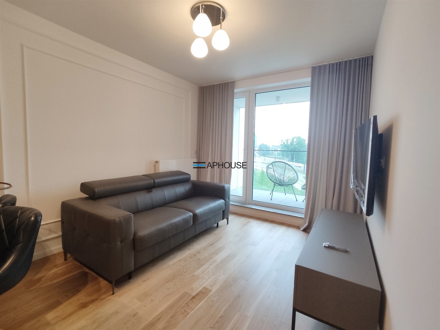 Mieszkanie wyposażone i umeblowane w wysokim standardzie wg. projektu architekta. W salonie znajduje się komplet wypoczynkowy z możliwością rozłożenia, stół z krzesłami, meblościanka oraz telewizor. Z salonu jest wyjście na balkon.