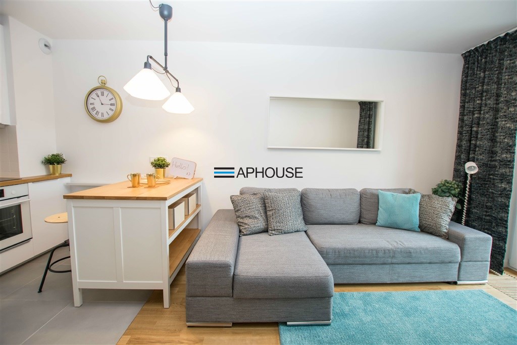 W mieszkaniu jest duży salon połaczony z aneksem kuchennym. W salonie jest sofa, szafka rtv, telewizor, stolik kawowy. Kuchnia jest w pełni wyposażona, posiada zmywarkę, piekarnik, okap, płytę indukcyjną, lodówko-zamrażarkę oraz zlew z baterią. W kuchni jest wiele miejsca do przechowywania oraz przestronny blat roboczy.