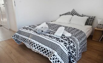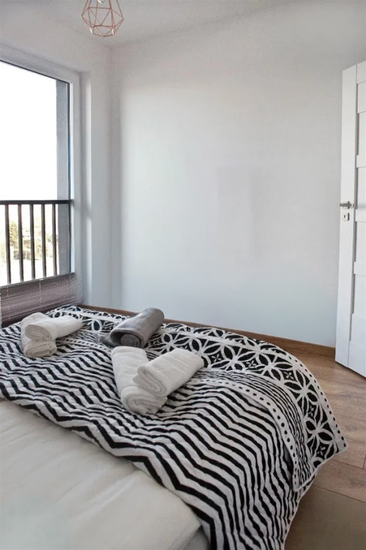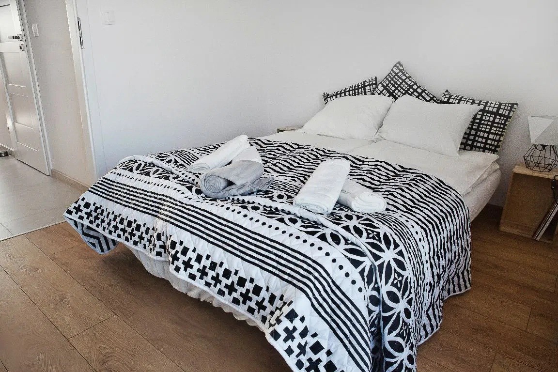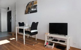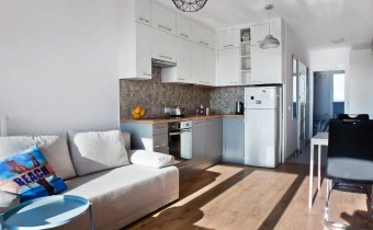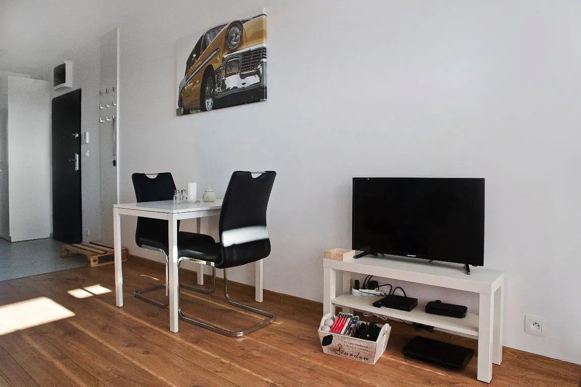 Mieszkanie jest kompleksowo wyposażone. W salonie znajduje się komplet wypoczynkowy (rozkładana sofa), TV, stoli kawowy. Kuchnia w pełni wyposażona ( lodówko- zamrażarka, piekarnik, okap, płyta, zmywarka oraz szafki) wraz ze stołem i 4 krzesłami. Z salonu znajduje sie wyjście na balkon. Sypialnia wyposażona jest w łóżko z podwójnym materacem oraz pojemną szafę. Łazienka gustownie urządzona, wyposażona jest w kabinę prysznicową, toaleta, pralkę umywalkę z szafką.