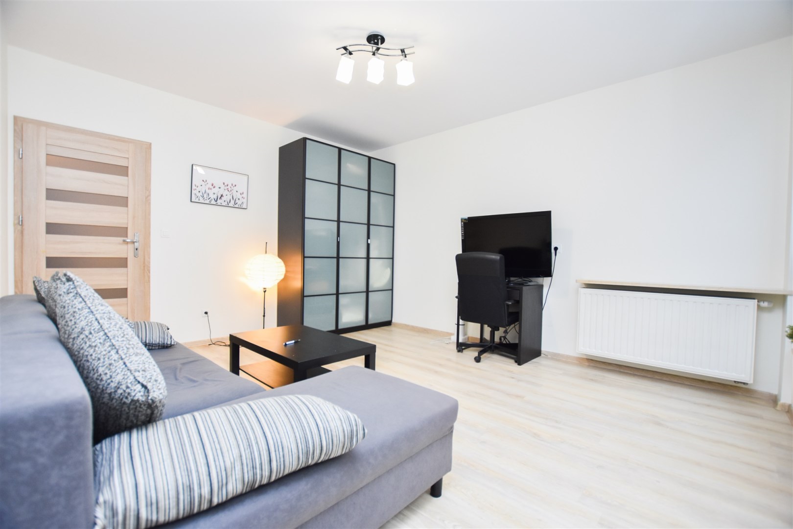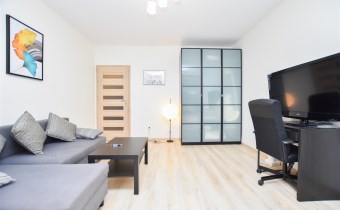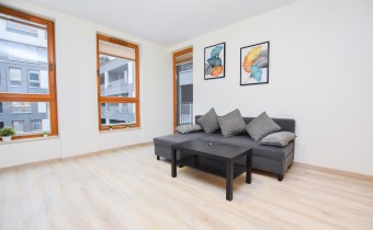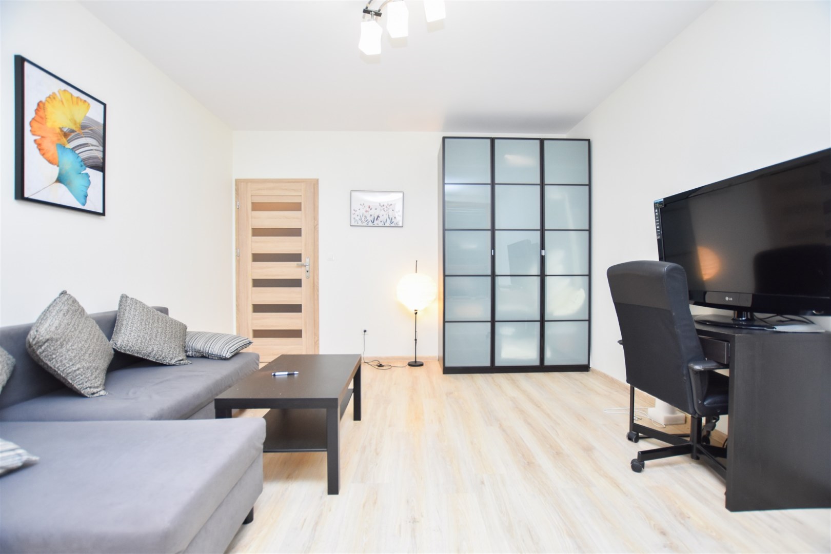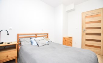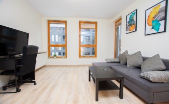Apartament położony jest na drugi piętrze i jest w pełni umeblowany. W Kuchnia w pełni wyposażone, zmywarka, piekarnik, płyta grzewcza, okap, zabudowa kuchenna, lodówka. W salonie sofa stolik kawowy, szafa i biurko z krzesłem. W sypialni podwójne łóżko, szafka nocna. Mieszkanie świeżo odmalowane. Balkon z widokiem na dziedziniec.