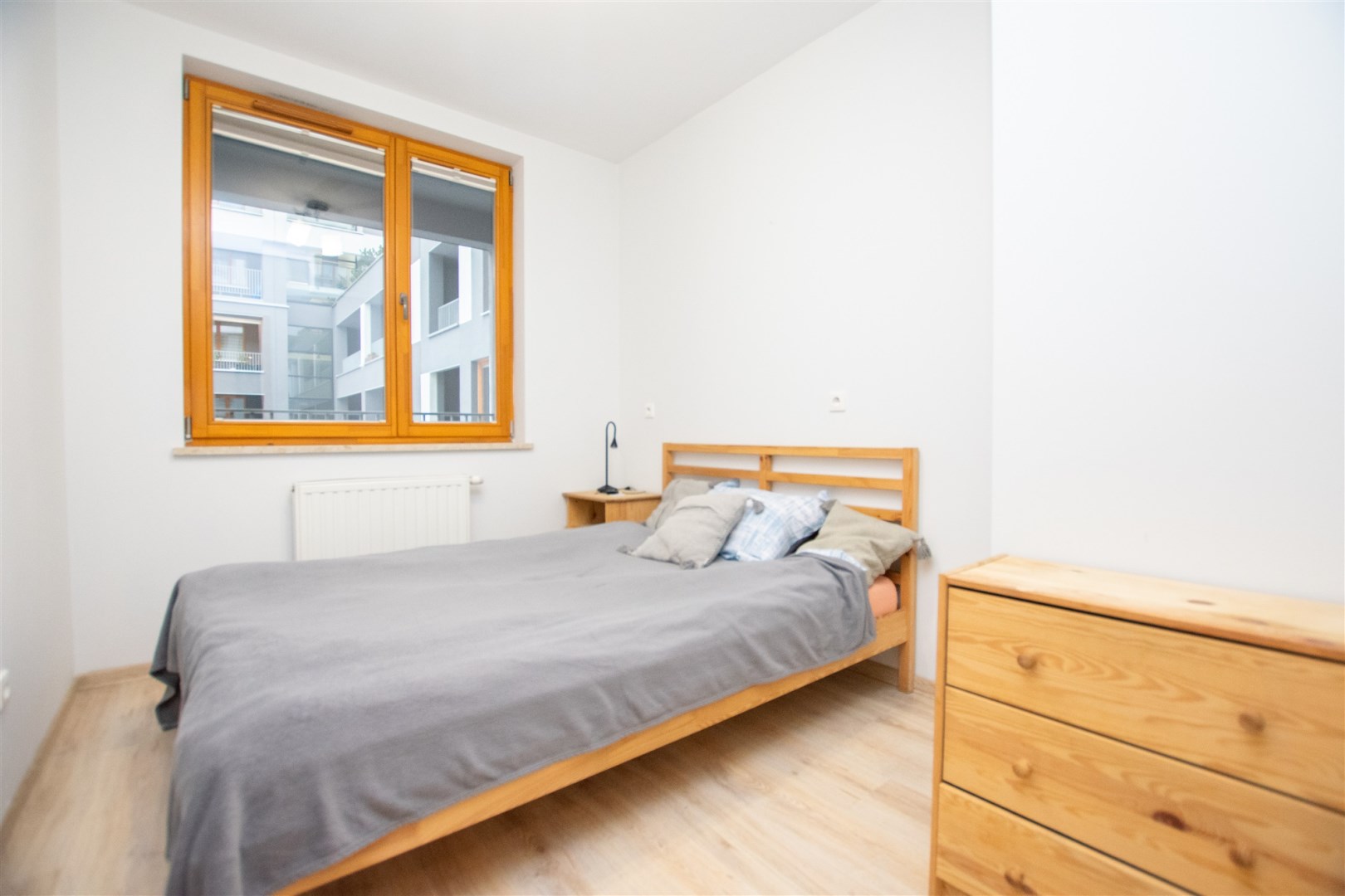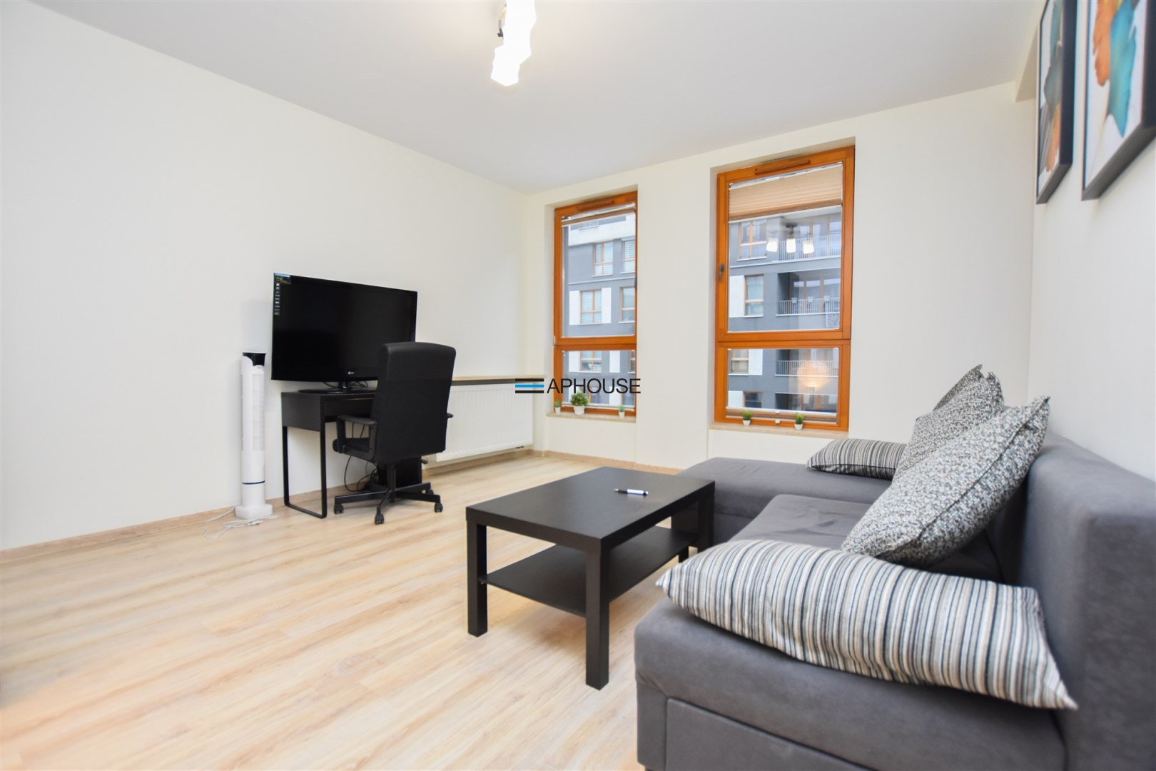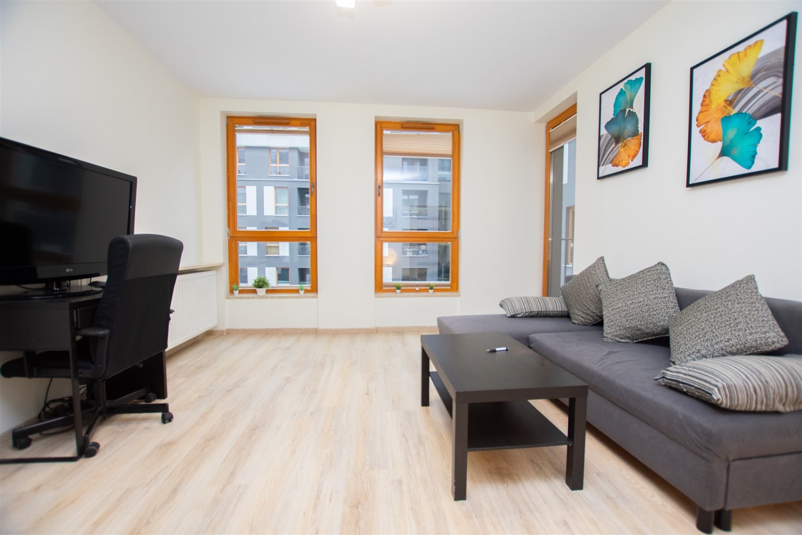Apartament położony jest na drugi piętrze i jest w pełni umeblowany. W Kuchnia w pełni wyposażone, zmywarka, piekarnik, płyta grzewcza, okap, zabudowa kuchenna, lodówka. W salonie sofa stolik kawowy, szafa i biurko z krzesłem. W sypialni podwójne łóżko, szafka nocna. Mieszkanie świeżo odmalowane. Balkon z widokiem na dziedziniec.