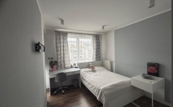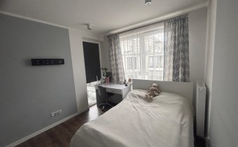 Mieszkanie wyposażone i umeblowane w wysokim standardzie. W sypialni znajduje się łóżko, szafy oraz stelaża z możliwością zawieszenia telewizora. Z tej sypialni jest wyjście na balkon