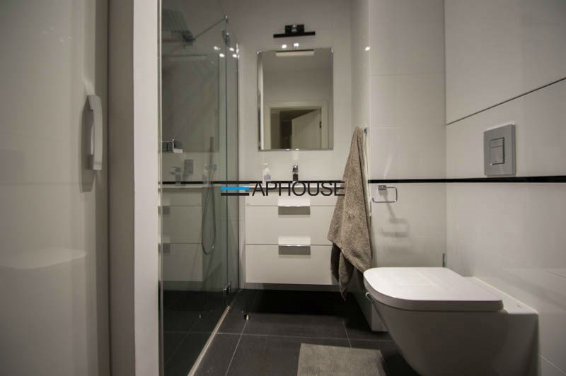 W sypialni znajduje się dwuosobowe łóżko z materacem, sofa rozkładana, biurko oraz telewizor. W łazience znajduje się prysznic, toaleta oraz półki. Z balkonu jest widok na Wisłę
