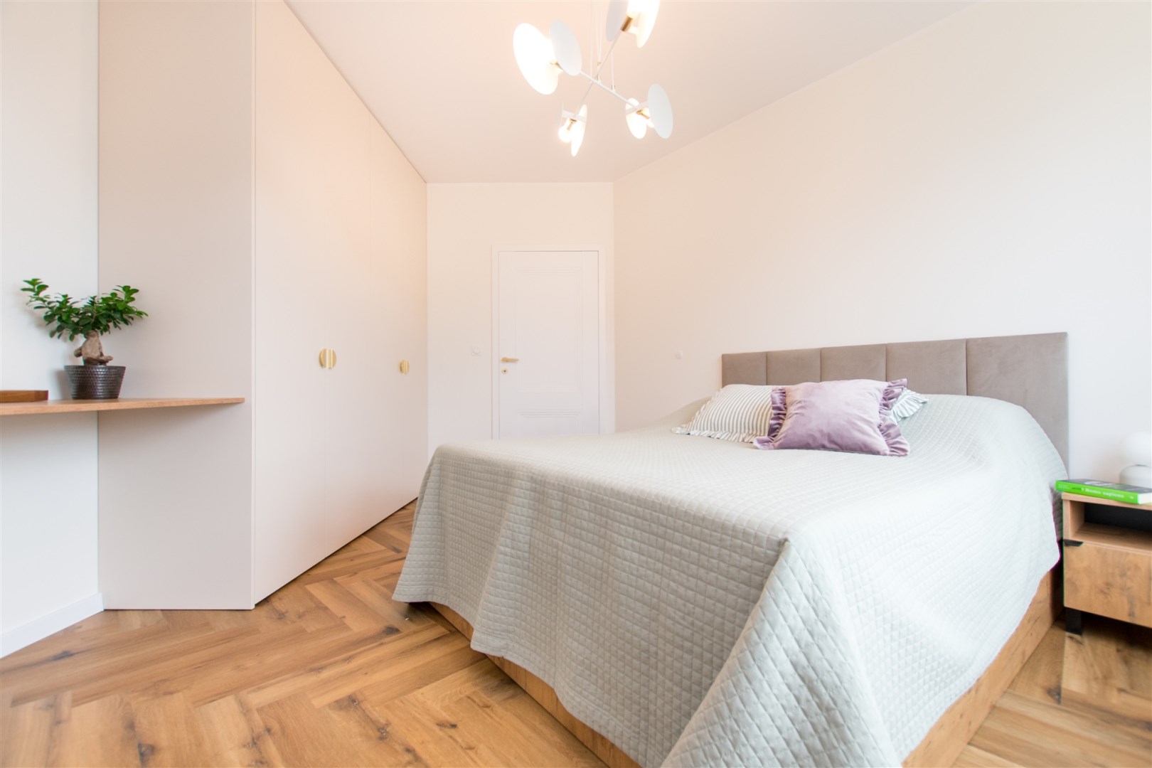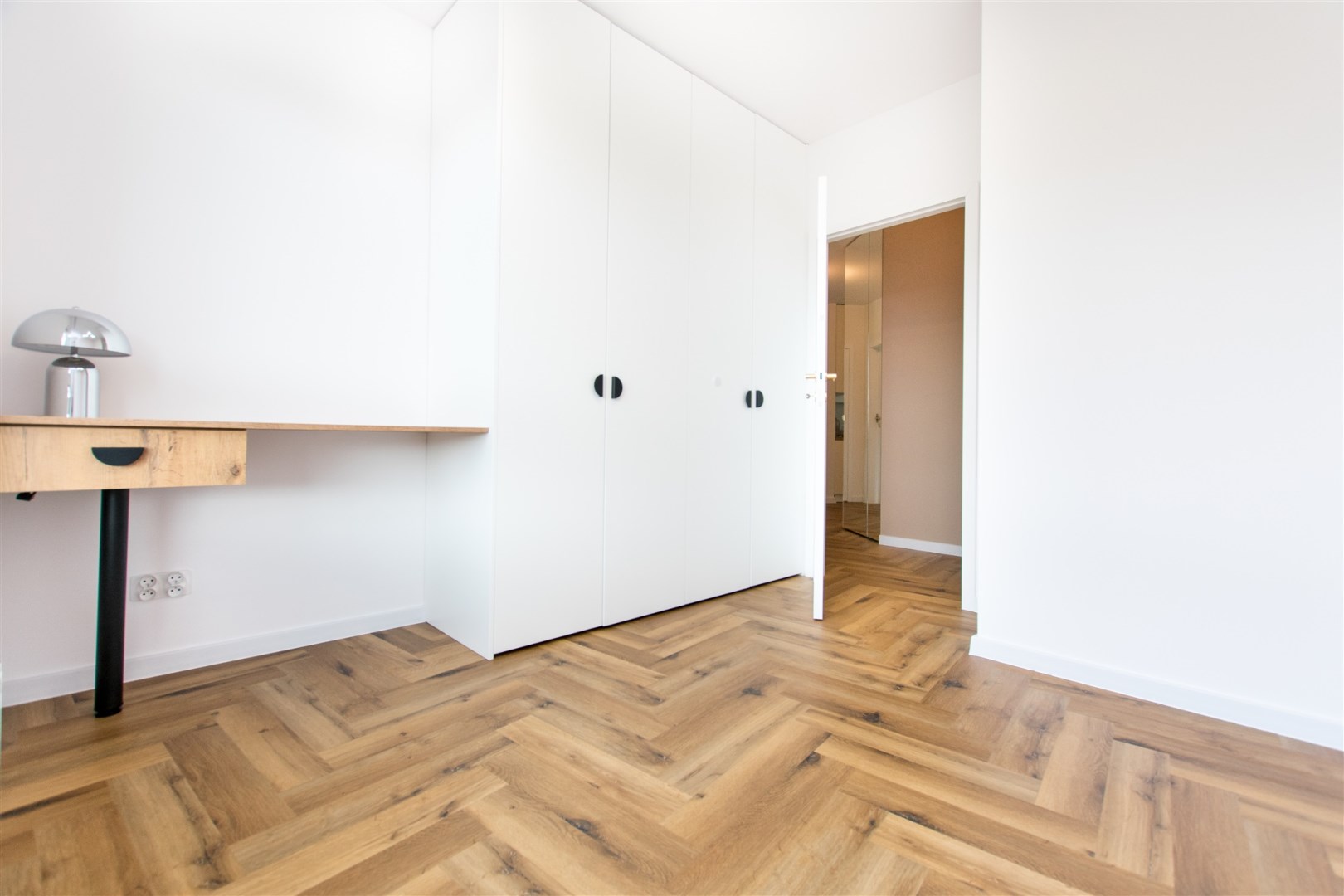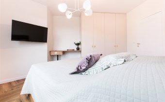 - sypialnia główna z szafą w zabudowie i biurkiem,