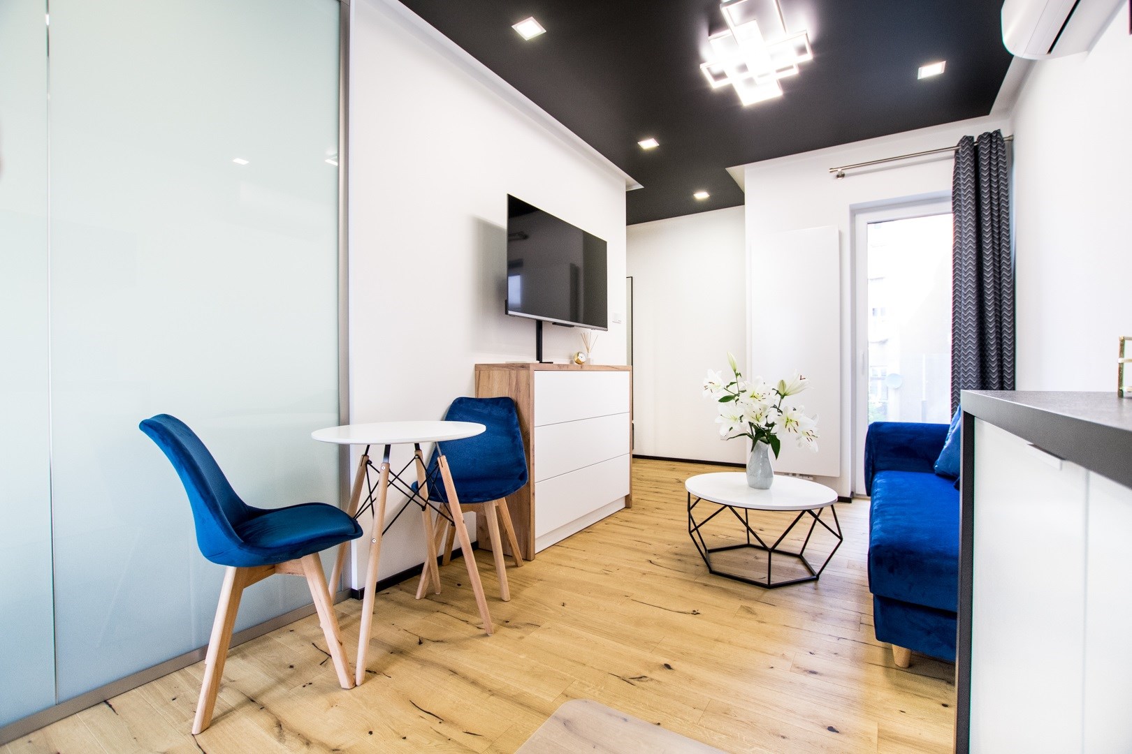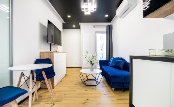 Mieszkanie stylowo urządzone z dbałością o każdy szczegół wykończenia. Jasny salon połączony z aneksem kuchennym, sofa z funkcją spania dla 1 osoby, stolik kawowy, smart TV, stół z krzesłami. Kuchnia w pełni wyposażona (zmywarka, podblatowa lodówka z zamrażalnikiem, płyta indukcyjna, piekarnik, okap). W sypialni dwuosobowe łóżko i fotel. Nowoczesna łazienka z prysznicem i pralką. Plusem jest klimatyzacja jak i wyposażenie dodatkowe (odkurzacz, żelazko, deska do prasowania, suszarka stojąca, pościel, wyposażenie kuchenne).