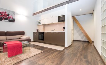 Okna nieruchomości wychodzą na zadbane podwórze, co zapewnia cisze i komfort użytkowania. Kompletnie wyposażony aneks kuchenny (płyta grzewcza, piekarnik, lodówka z zamrażarką, zmywarka). W salonie kącik telewizyjny z rozkładaną sofą oraz stół jadalniany dla 4 osób. Łazienka z wanną i pralką. Przestronna sypialnia pozwala na zaaranżowanie miejsca do pracy w domu. Dwie pojemne szafy w zabudowie i schowek na antresoli zapewniają dużo miejsca na przechowywanie.