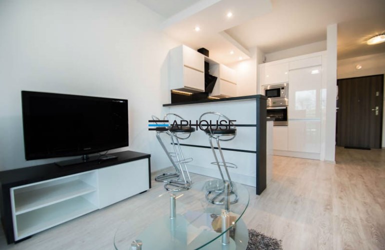 Fully equipped kitchen annex (fridge with a freezer, hob, dishwasher, oven). Living room with sofa, tv, table with armchairs. Bedroom with a comfortable double bed and separate wardrobe. Flat has a big balcony with an access from the living room.