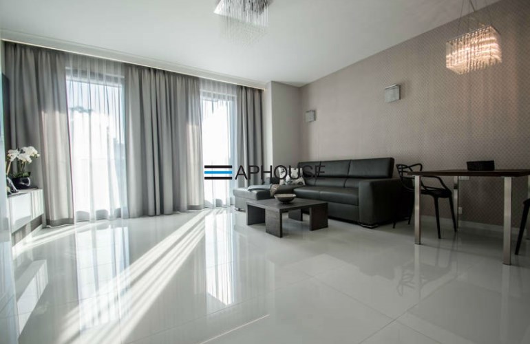 Apartment is fully furnished and equipped. The kitchen is fully furnished and fully equipped (fridge-freezer, dishwasher, hob, oven, dishes, kettle, cutlery), Living room is equipped with sofa, table witch armchairs. There is entrance to the balcony